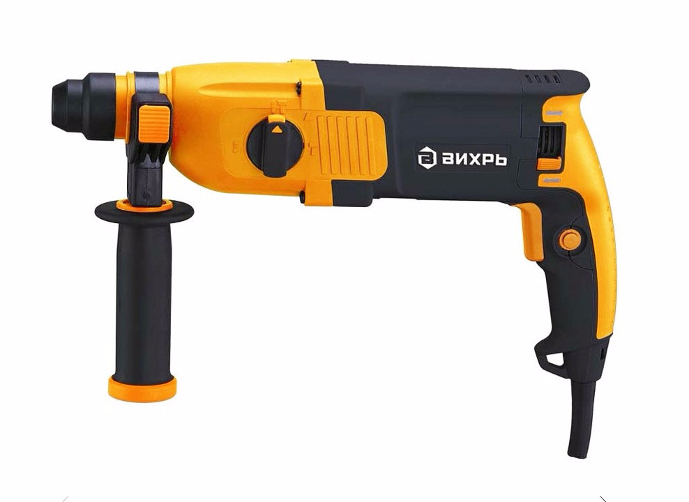 Перфоратор ВИХРЬ – электроинструмент, аналогичный дрели, но с наличием не механического, а пневматического ударного механизма. Именно поэтому перфоратор используют для сложных работ по твёрдым материалам - бетону, кирпичу, металлам. Агрегат используется для сверления и пробивания отверстий в прочных материалах без приложения особых физических усилий со стороны оператора. Принцип работы перфоратора – это разрушение обрабатываемого материала с помощью поступательных и вращательных действий рабочего элемента. Состоит перфоратор из электрического двигателя, редуктора, ударного механизма и патрона для крепления рабочих инструментов (буры, коронки, зубила и т.д.).