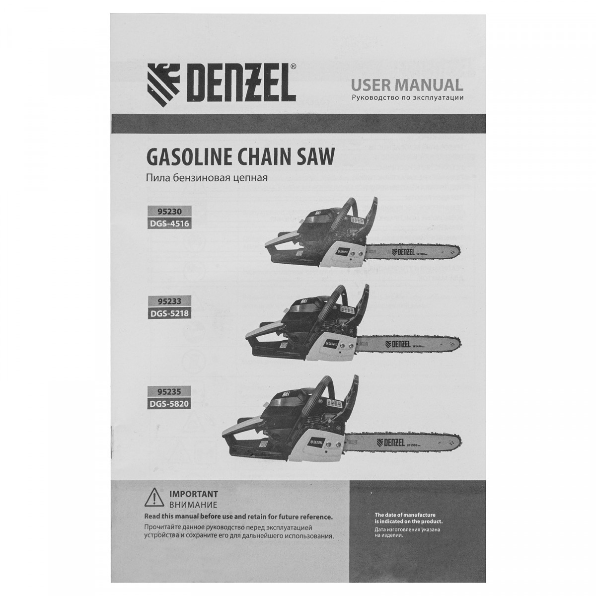 Пила цепная бензиновая Denzel DGS-4516 95230 с двигателем объемом 45 см3 и мощностью 3,0 л.с. поставляется с шиной длиной 40 см и цепью с 57 звеньями (шаг 3/8″, паз 1,3 мм). Это бытовой инструмент для заготовки дров, обрезки ветвей и сучьев в саду, распила древесины твердых и мягких пород. Пила выдерживает интенсивные нагрузки, используется во время строительных и ремонтных работ, будет полезна на дачном участке.