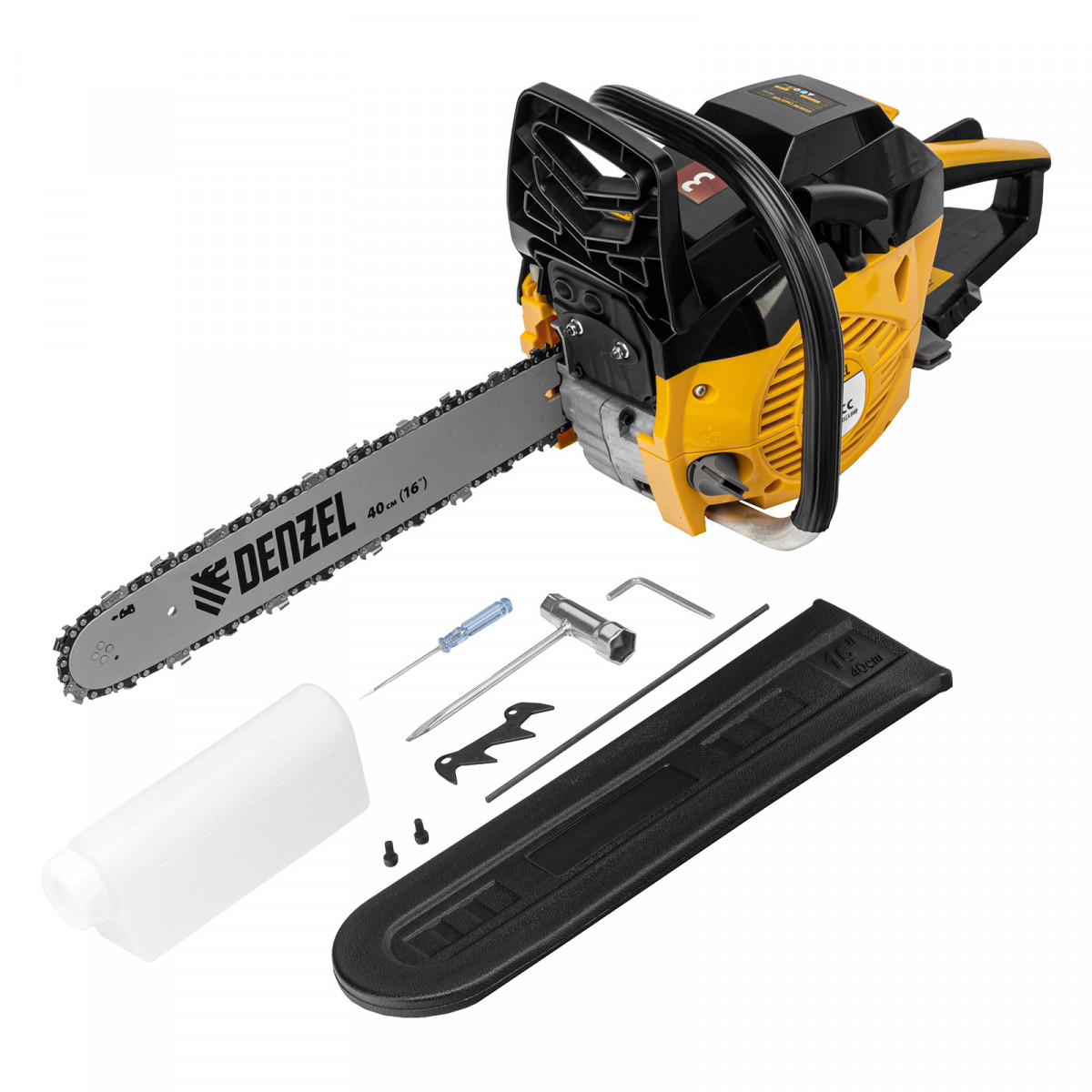 Пила цепная бензиновая DGS-4516, шина 40 см, 45 см3, 3 л.с, шаг 3/8, паз 1.3 мм, 57 звеньев Denzel