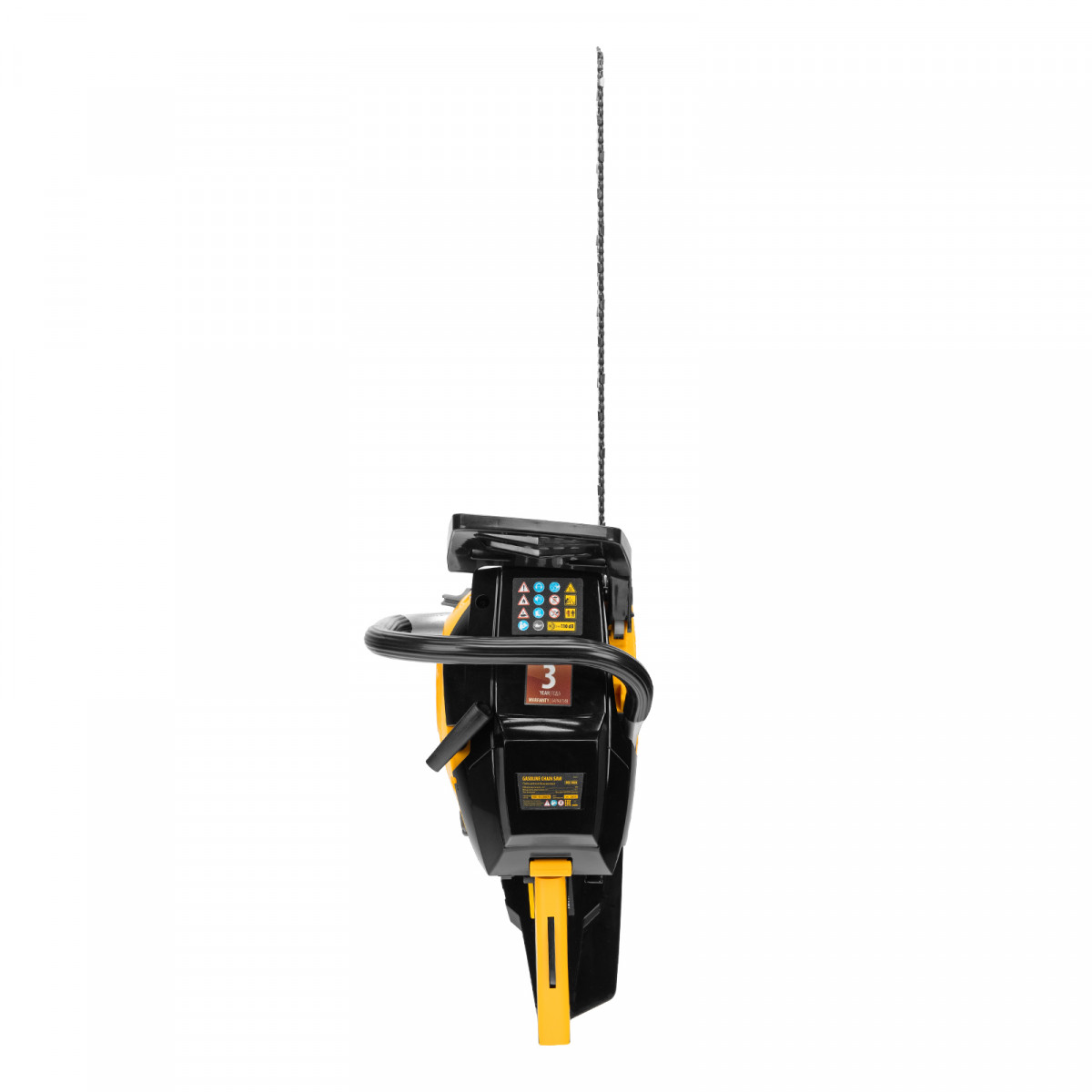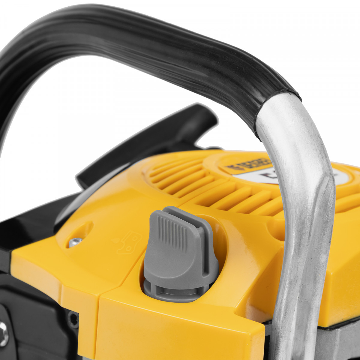 • Безопасность пользователя — усиленный щиток и автоматический тормоз цепи уменьшают риск получения травм при отскоке пилы, также предусмотрена защита от случайного пуска.