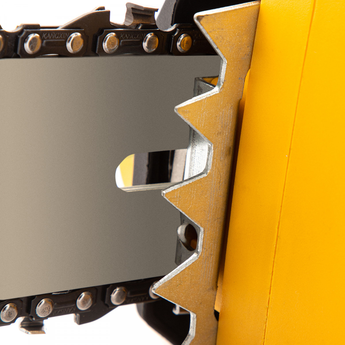 - Быстрое натяжение одной рукой (система SDS) — не нужно использовать ключ, чтобы поправить провисшую цепь, поэтому обслуживание пилы не доставит лишних хлопот.