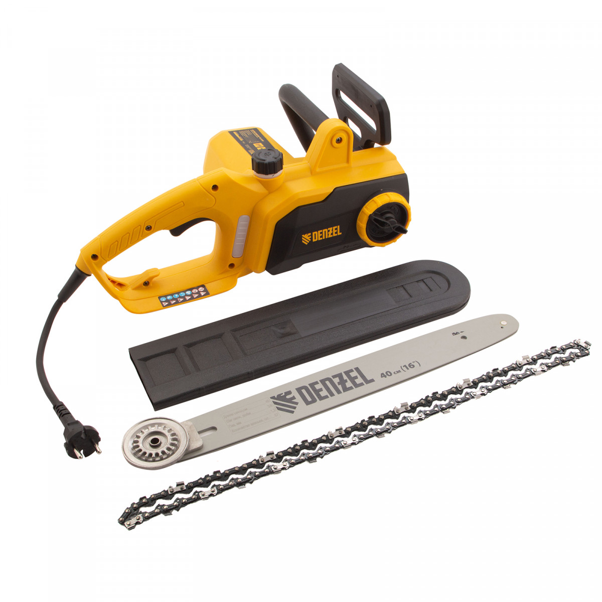 Пила цепная электрическая EDS-2000P, 2 кВт,поперечная, шина 40 см, шаг 3/8, паз 1.3 мм, 57 звеньев Denzel
