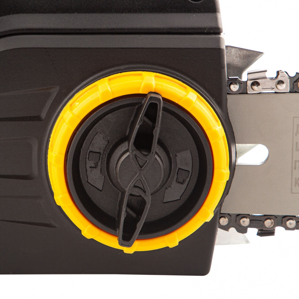 • Безопасная эксплуатация — блокировка пуска предотвращает случайное включение пилы, инерционный тормоз цепи мгновенно останавливает ее вращение при резком отскоке инструмента в сторону пользователя.