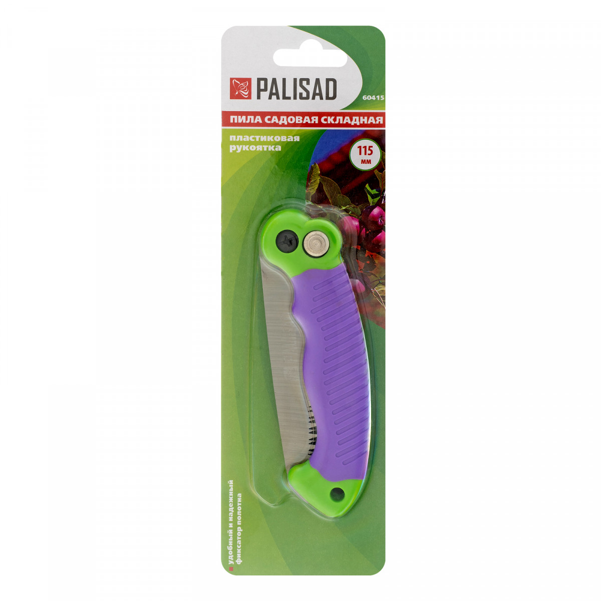 Пила садовая складная, 115 мм рабочая часть, пластиковая обрезиненная рукоятка, Palisad