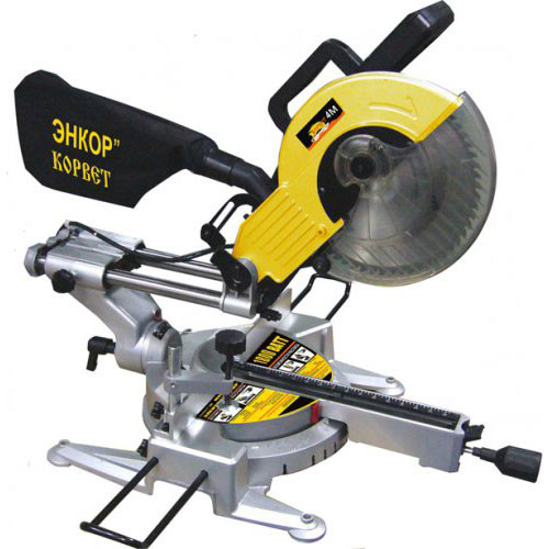 Торцовочная пила Энкор Корвет предназначена для распила жесткой и мягкой древесины, а также других материалов (ламината, пластика, алюминиевого профиля и других подобных материалов) при наличии специальной оснастки. Инструмент имеет небольшой вес и габариты. При помощи пилы можно выполнять пиление под прямым, косым углом и под наклоном,. Мощность двигателя составляет 1800 Вт, а диаметр пильного диска - 255 мм.