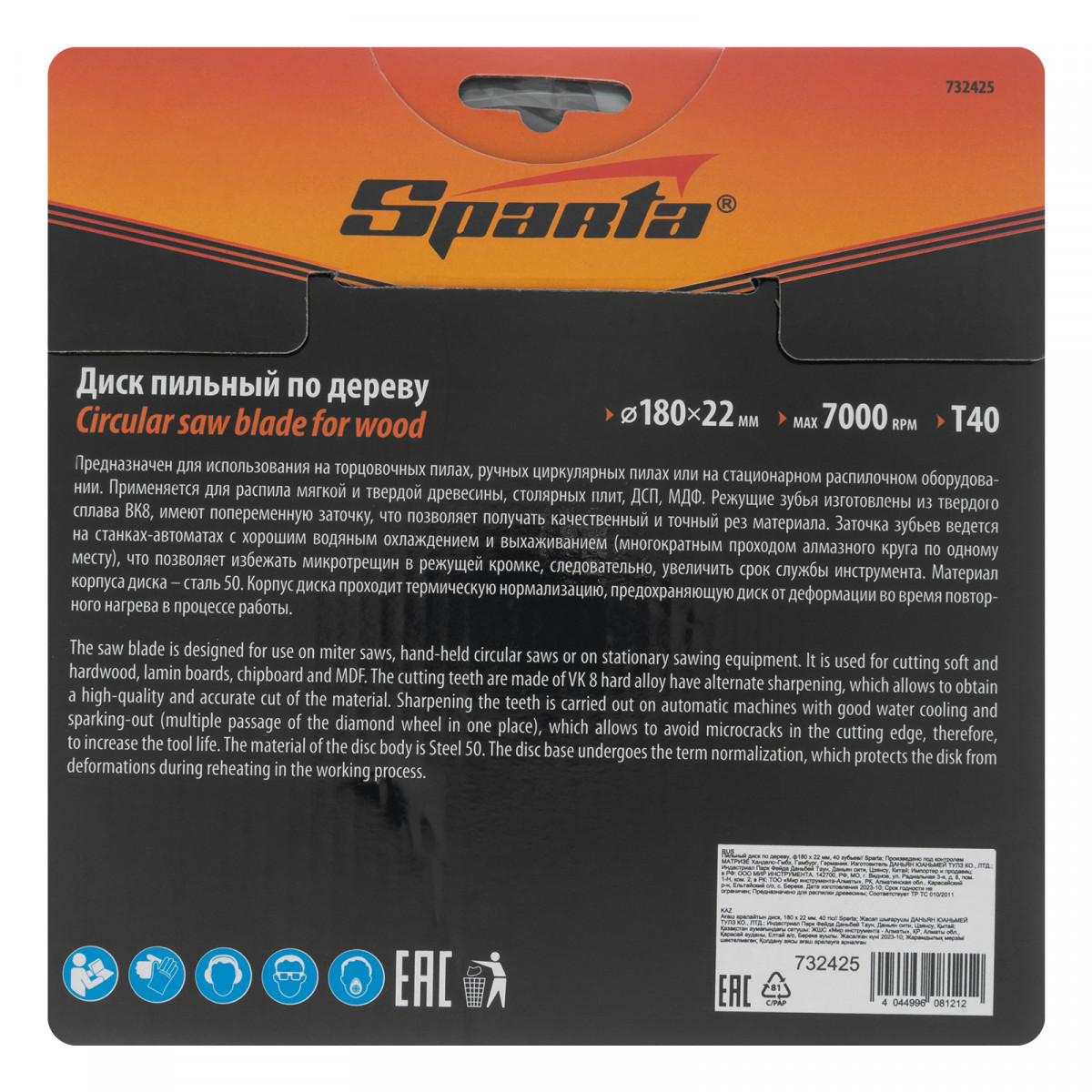 Пильный диск Sparta 732425 диаметром 180 х 22 мм, с 40 зубьями, используется для распила древесины мягких и твердых пород, фанеры, плит ДСП и МДФ. 40 зубьев обеспечивают оптимальное по скорости и качеству пиление. Благодаря попеременной заточке зубцов достигается высокое качество реза. Диск устанавливается на торцовочную, циркулярную пилу либо на распиловочный станок, применяется в бытовой сфере.