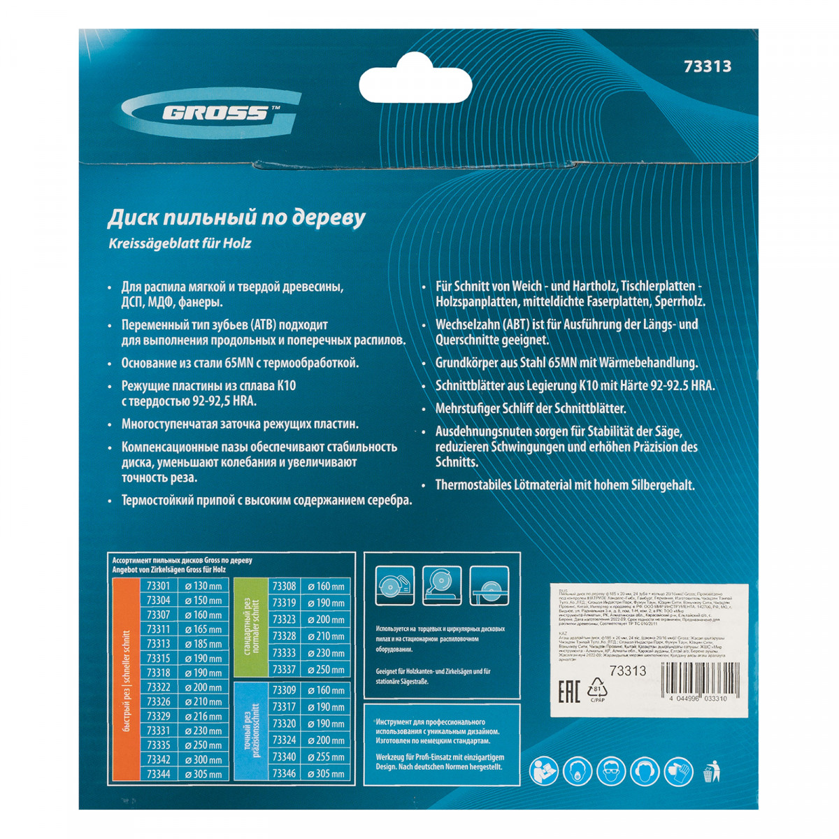 Пильный диск по дереву 185 x 20/16 x 24Т Gross