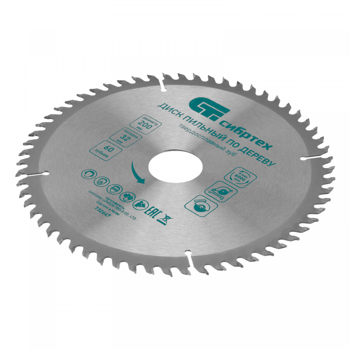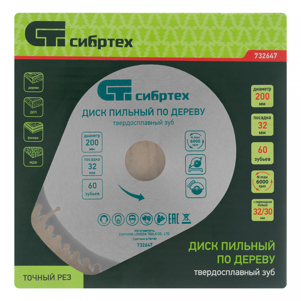 Пильный диск по дереву, 200 х 32 мм, 60 зубьев, кольцо 30/32 Сибртех