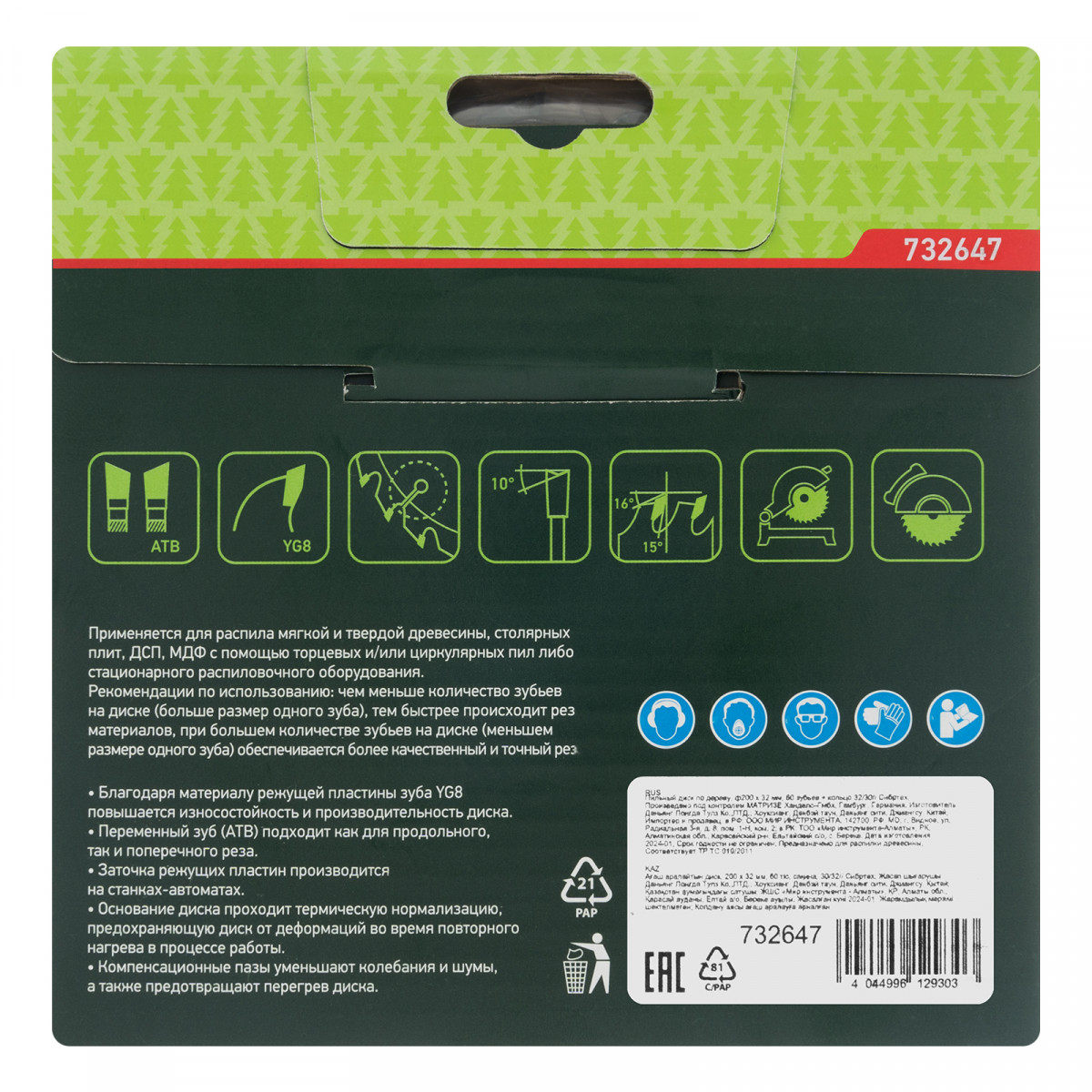 • Качественный рез — 60 зубьев типа АТВ с попеременной заточкой позволяют использовать диск для точного поперечного распила материалов и получения чистых кромок