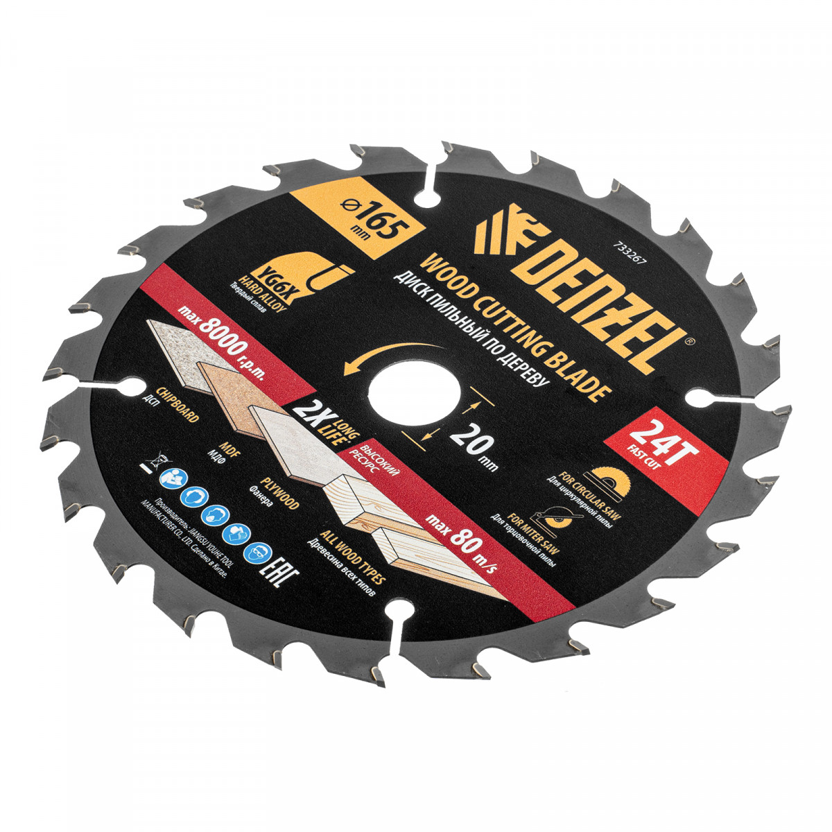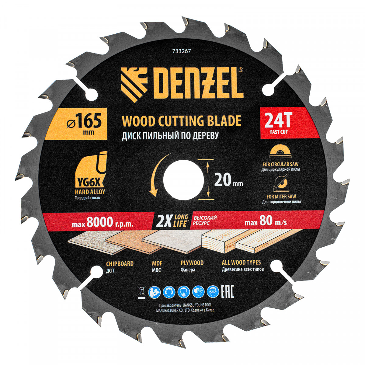 Пильный диск по дереву ф165 х 20 мм, 24 зубьев, тонкий Denzel