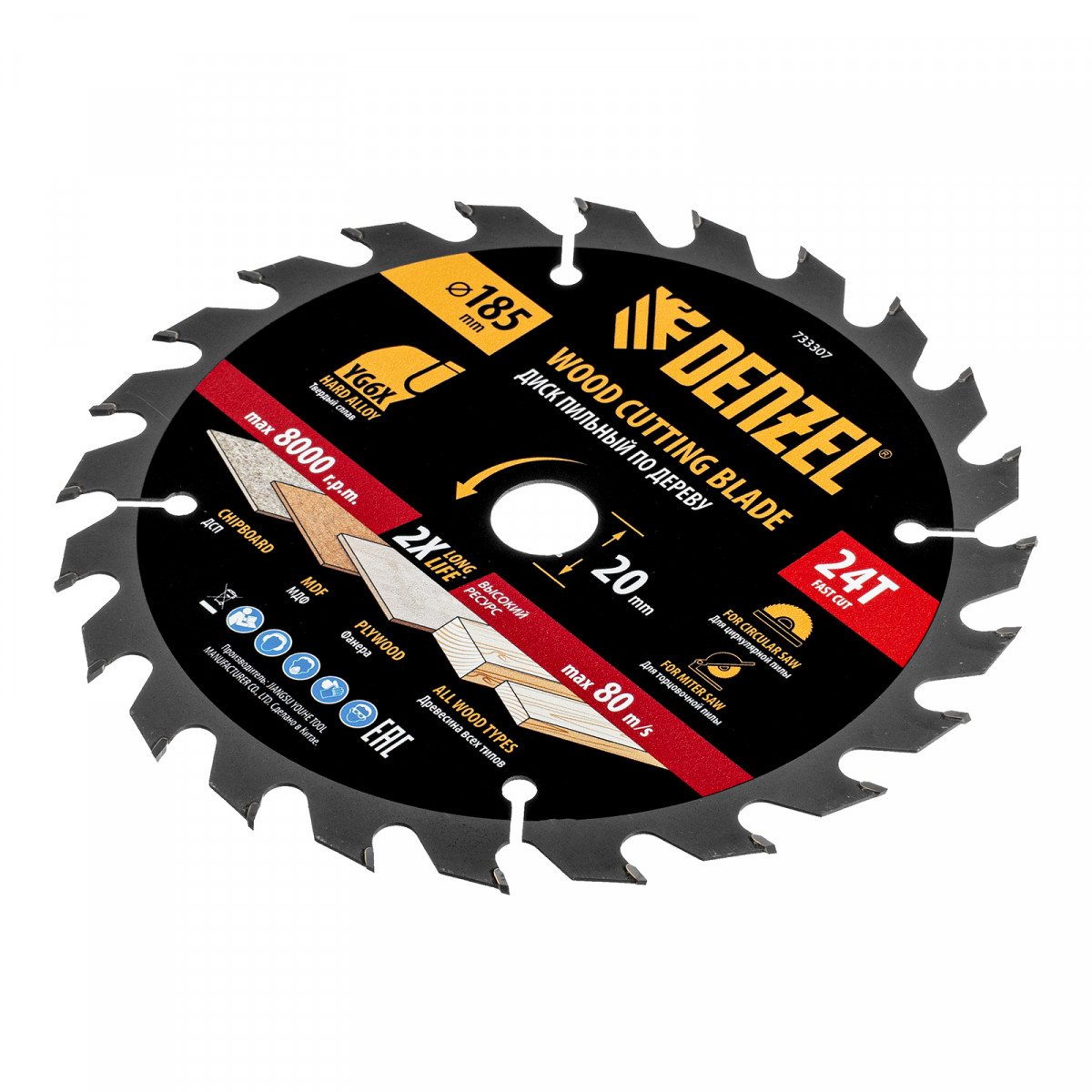 Пильный диск по дереву ф185х 20 мм, 24 зубьев Denzel