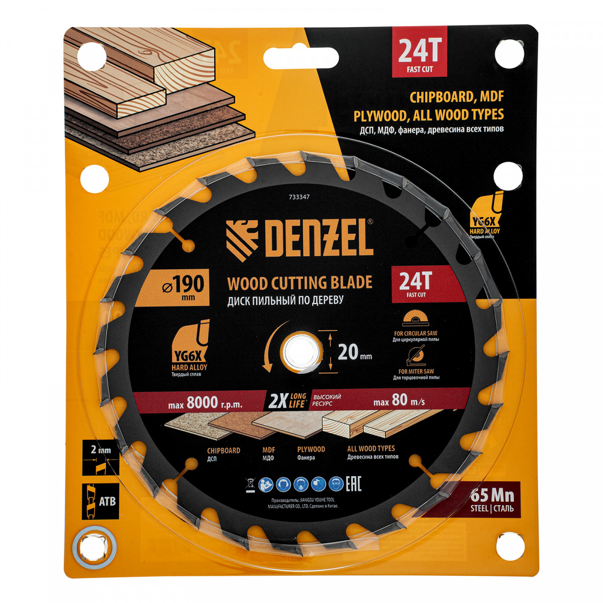Пильный диск Denzel 733347 диаметром 190 x 20 мм, с 24 зубьями, предназначен для продольного и поперечного распила твердой и мягкой древесины, фанеры, МДФ, ДСП. 24 зуба типа ATB с режущими пластинами оптимальной геометрии обеспечивают быстрый рез. Режущие пластины из твердого сплава YG6X сохраняют рабочие свойства при интенсивном использовании. Диск устанавливается на циркулярную, торцовочную пилу или на распиловочный станок. В комплект поставки входит переходное кольцо с 20 на 16 мм, что позволяет изменить посадочный размер и расширяет возможности использования диска.