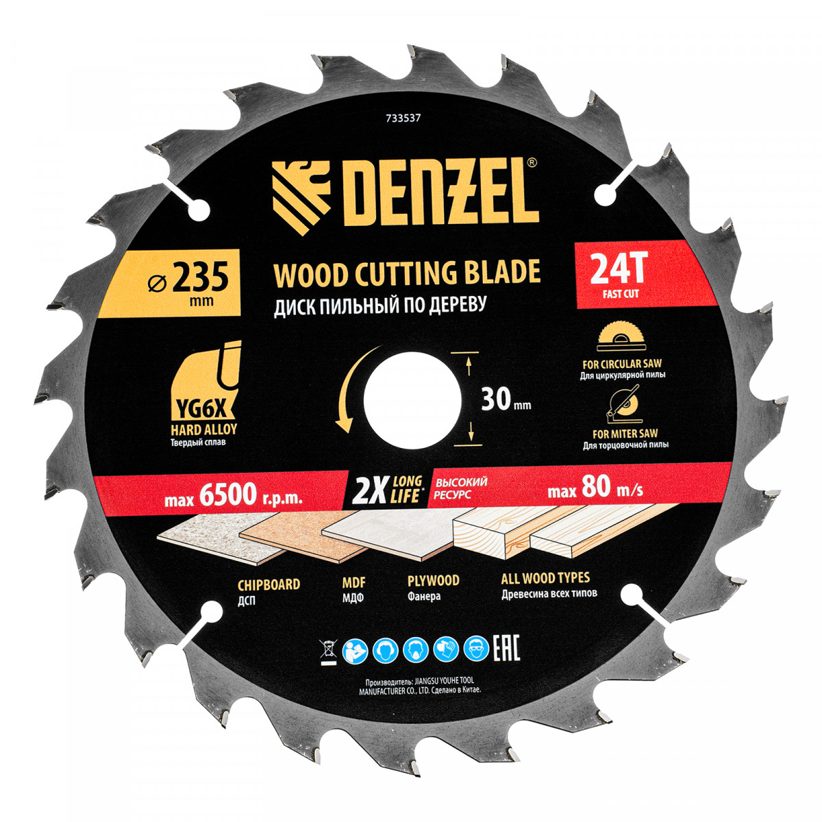 Пильный диск по дереву ф235 х 30 мм, 24 зубьев Denzel