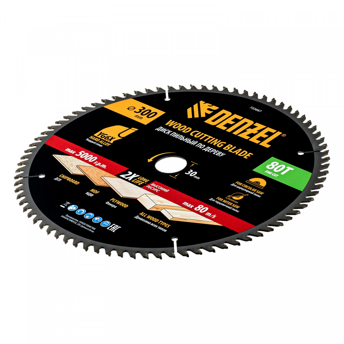Пильный диск Denzel 733667 диаметром 300 x 30 мм, с 80 зубьями, предназначен для точного продольного и поперечного распила твердой и мягкой древесины, фанеры, МДФ, ДСП. 80 зубьев типа ATB с режущими пластинами оптимальной геометрии обеспечивают максимально чистый рез. Режущие пластины из твердого сплава YG6X сохраняют рабочие свойства при интенсивном использовании. Диск устанавливается на циркулярную, торцовочную пилу или на распиловочный станок. В комплект поставки входит переходное кольцо с 30 на 20 мм, что позволяет изменить посадочный размер и расширяет возможности использования диска.