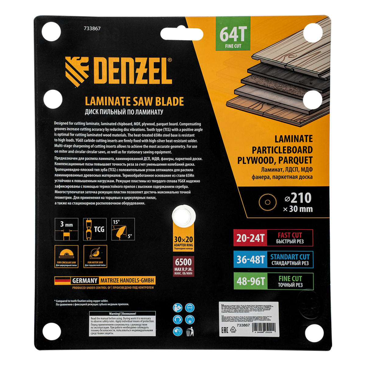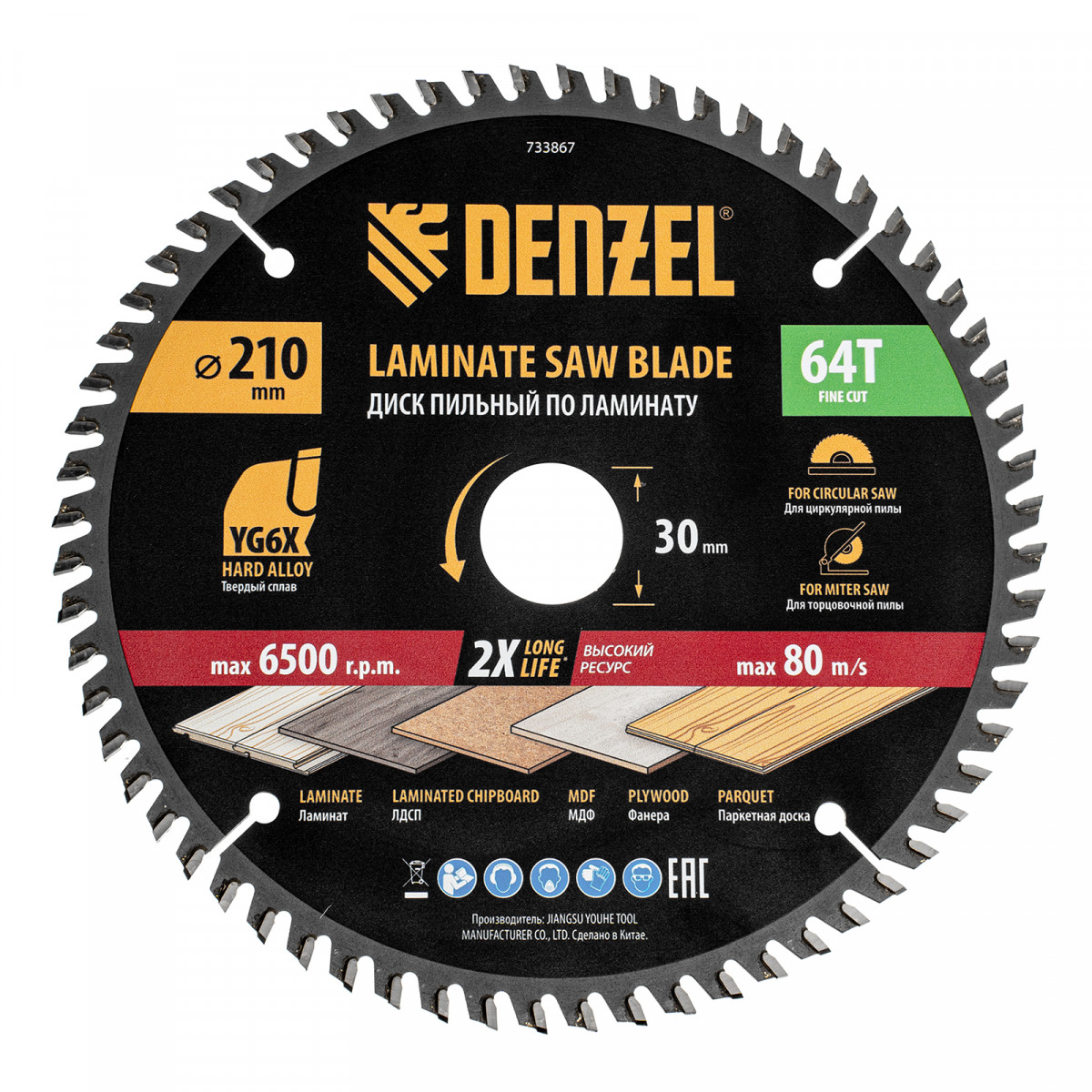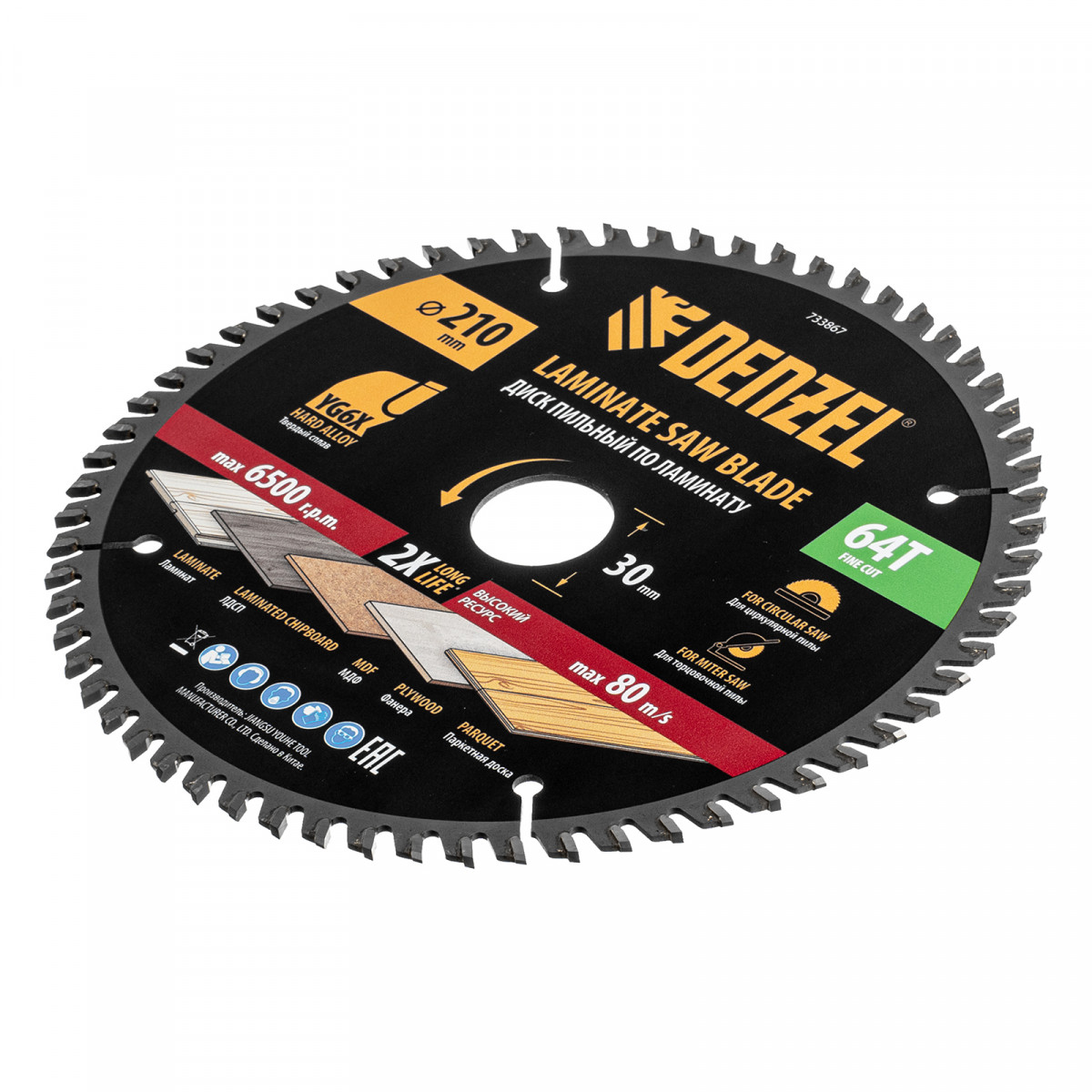 Пильный диск по ламинату ф210 х 30 мм, 64 зубьев Denzel