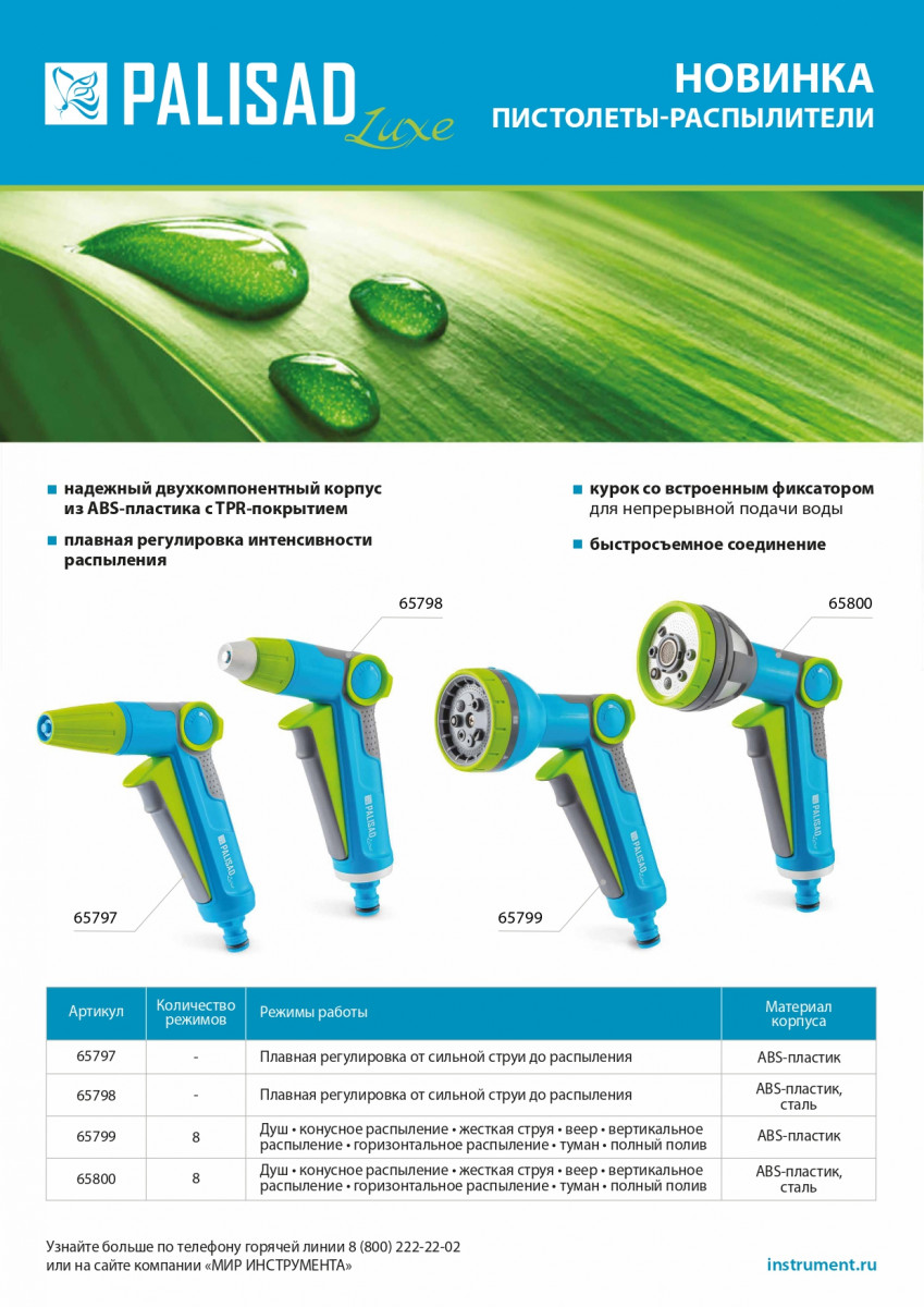 Корпус из прочного ABS-пластика и распыляющая головка из стали обеспечивают высокую прочность пистолета-распылителя LUXE Palisad.