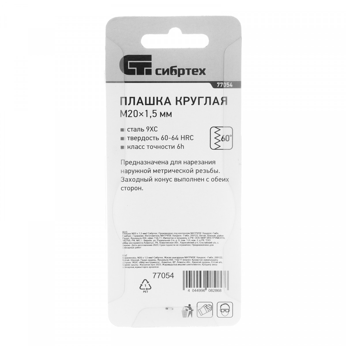 Плашка М20 х 1.5 мм Сибртех