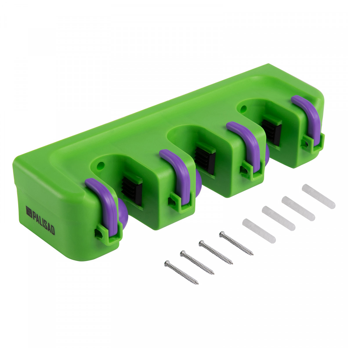 Пластиковый настенный держатель для садово - огородного инструмента, 3 ячейки, 4 крюка, Palisad