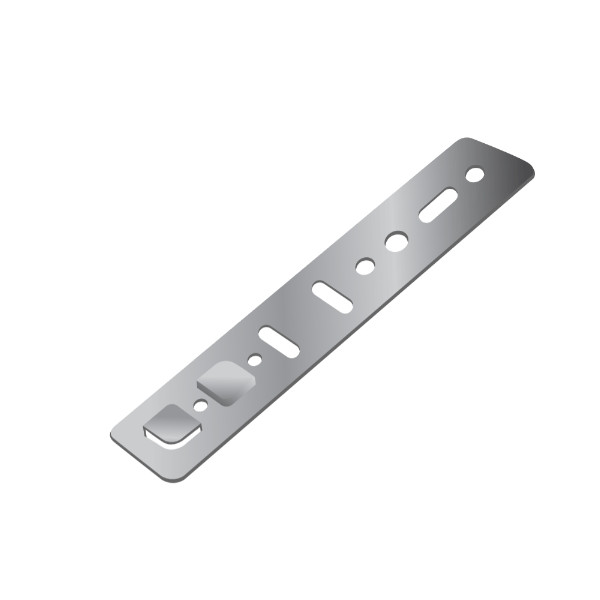 Имеет несколько круглых и продолговатых отверстий для крепления к строительной конструкции в нужном положении.