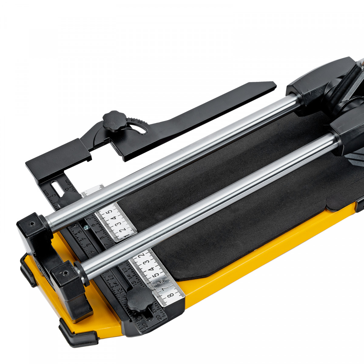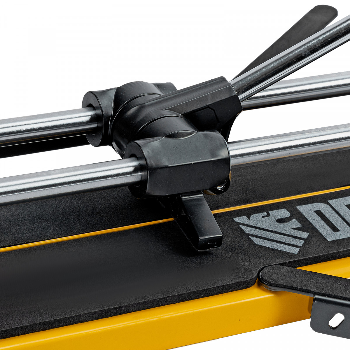 - Удобная работа — благодаря противоскользящим накладкам плиткорез не смещается даже на гладких поверхностях.
