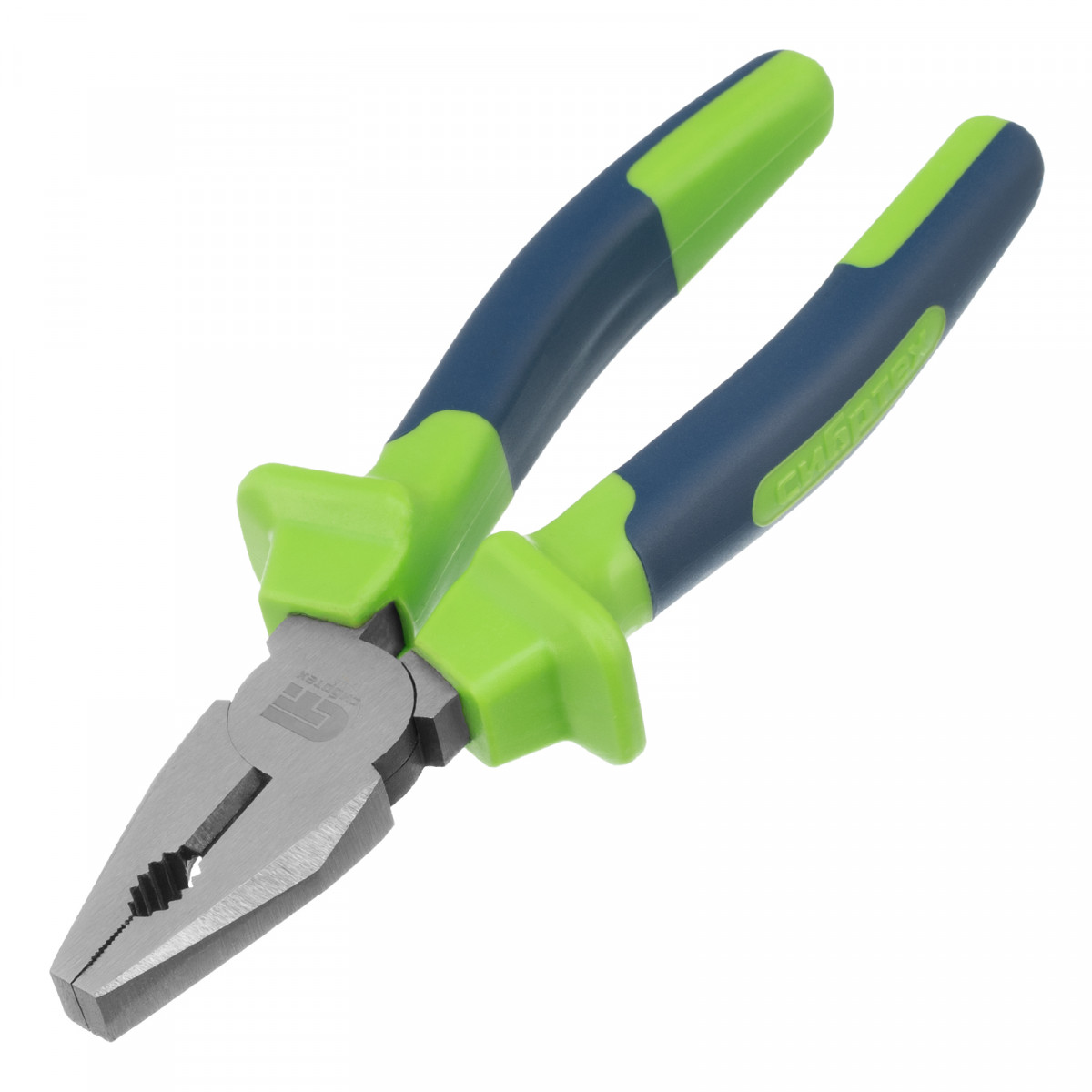 Комбинированные плоскогубцы Сибртех 17052 длиной 200 мм, с двухкомпонентными рукоятками, предназначены для перекусывания проволоки и захвата крепежа, прутков и других деталей. Будут полезны слесарю и монтажнику во время наладки оборудования, ремонта сантехники и выполнения других работ.