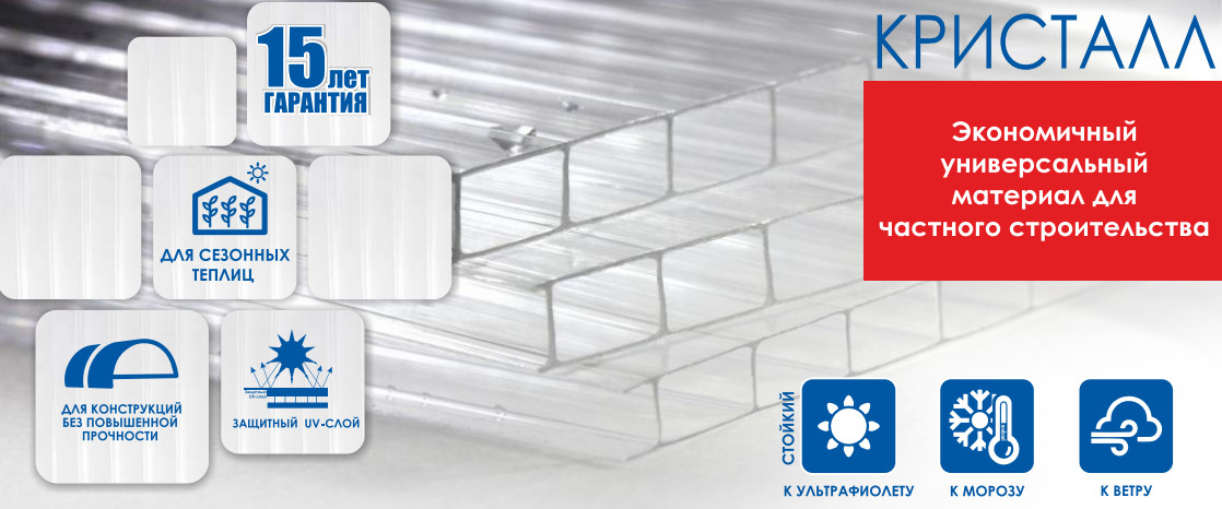 Поликарбонат сотовый КАРБОГЛАСС Кристалл 8 мм бесцветный 2,1*6 м