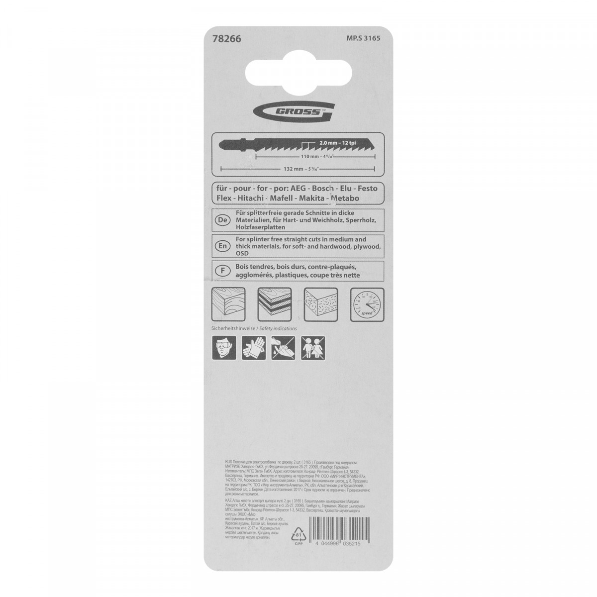 Полотна для электролобзика по дереву, 2 шт, ( 3165 ) Gross