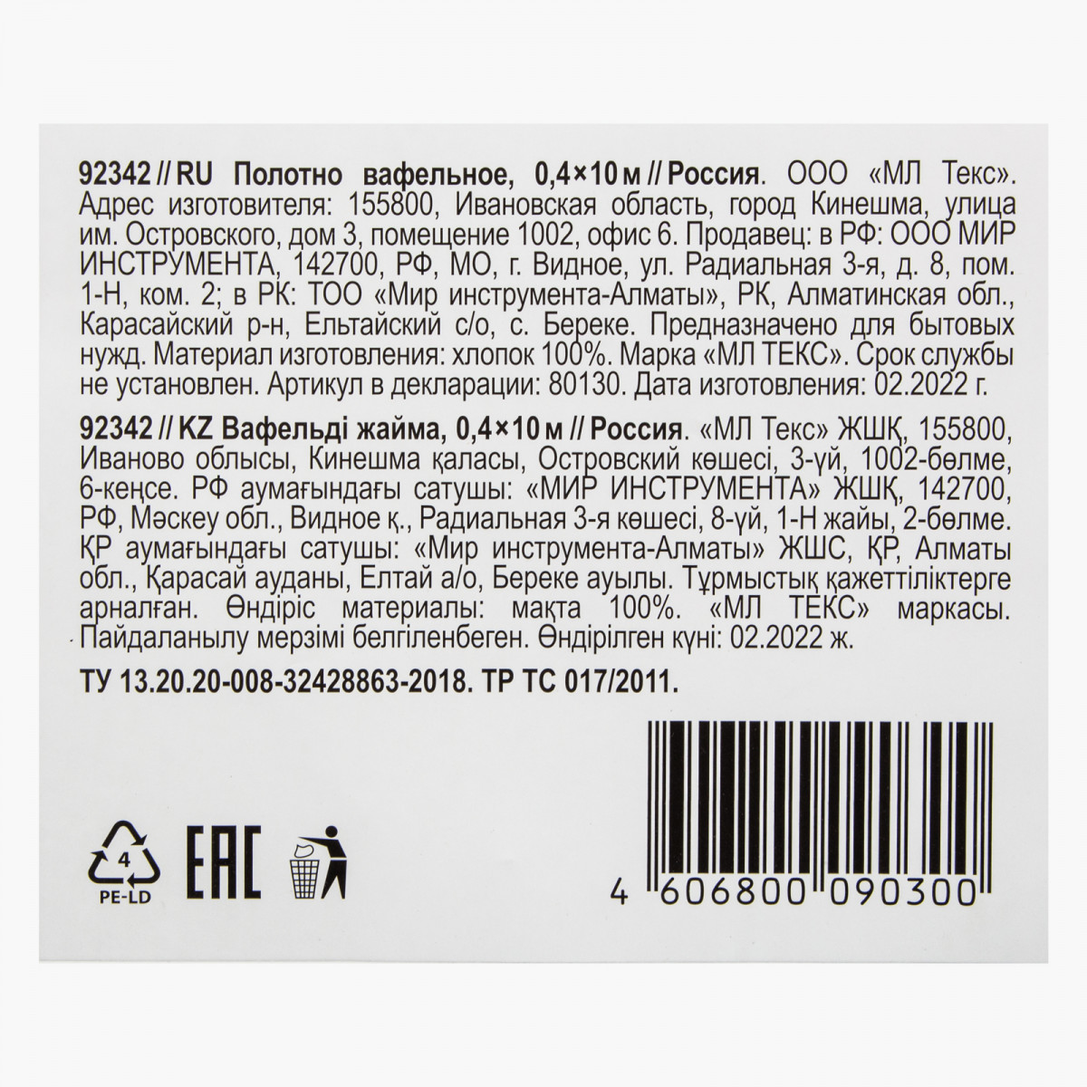 Полотно - 1 рулон, Упаковка