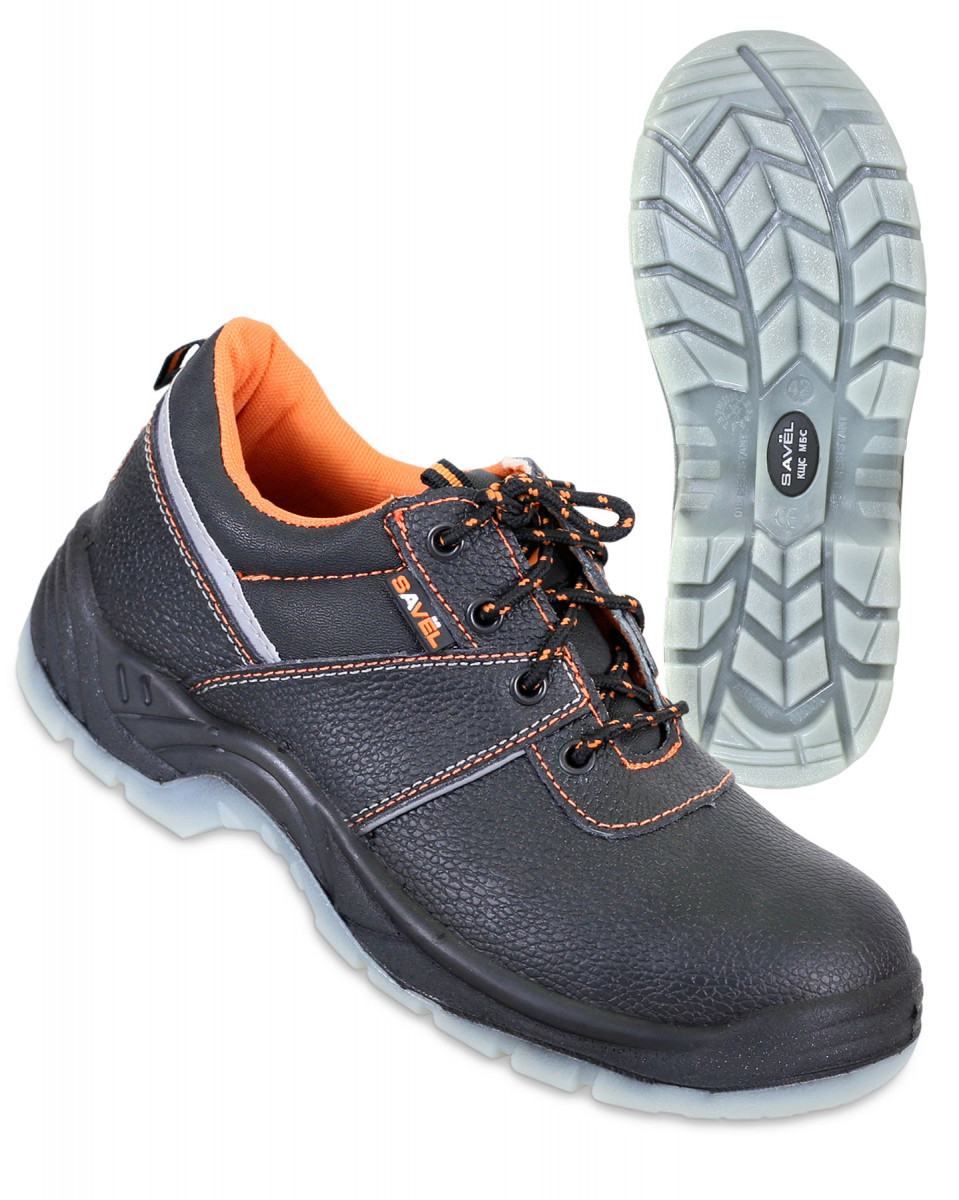 Верх обуви изготовлен из кожи со специальным покрытием для защиты от ОПЗ, МВ, МВО. Застежка на шнурок. Подошва двухслойная ПУ/ТПУ: полиуретан обладает амортизирующими свойствами, гасит ударные нагрузки, а также придает обуви лёгкость, комфорт и повышенные теплозащитные свойства. Термополиуретан обладает гибкостью и прочностью, поэтому обувь с подошвой из этого материала прослужит долго. Литьевой метод крепления подошвы обеспечивает с верхом обуви единое целое, в результате достигается полная герметичность в месте литья. Такой метод крепления является самым прочным и долговечным на сегодняшний день. Подошва сохраняет свои свойства в широком диапазоне температур и обладает стойкостью к воздействию масел, сырой нефти, нефтепродуктов. Подклад в полуботинках серии "SAVEL-Европа" оранжевого цвета и выполнен из воздухопроницаемого нетканого материала «типика», который обеспечивает комфортный микроклимат, быстро сохнет и имеет высокую степень устойчивости к истиранию.