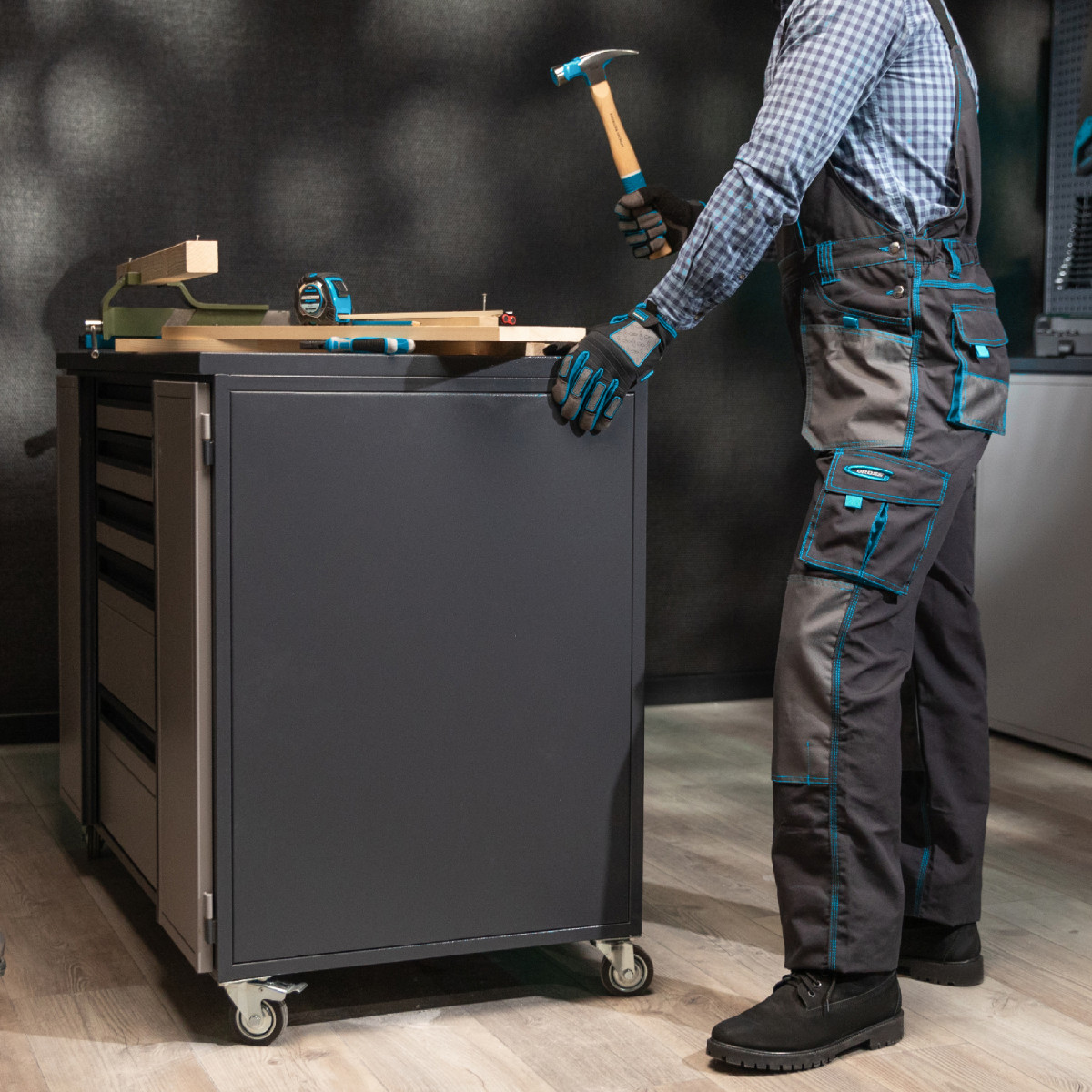 - Функциональность — в 14 карманах можно разместить инструменты и необходимые мелочи, благодаря липучкам мобильный телефон и другие мелкие предметы не потеряются.