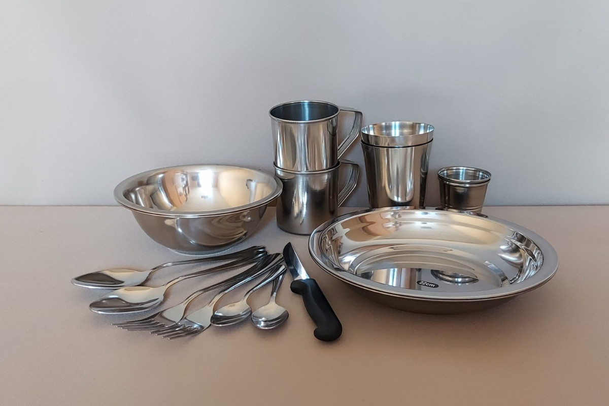 На пикнике или в походе у каждого участника обязательно должна быть глубокая тарелка для супов и прочих жидких кушаний; мелкая — для салатов и «вторых» блюд; столовая ложка и вилка; стопка для крепкого алкоголя, стакан для прохладительных напитков, кружка для горячего кофе и чая, а также маленькая чайная ложечка, чтобы отмерять нужное количество ингредиентов для их приготовления. Как видите, минимальный посудный набор на все случаи жизни содержит довольно много предметов даже для одного человека. А что делать, если вы едете куда-то вчетвером? Возьмите этот небольшой портфель, где всё необходимое грамотно и компактно упаковано!