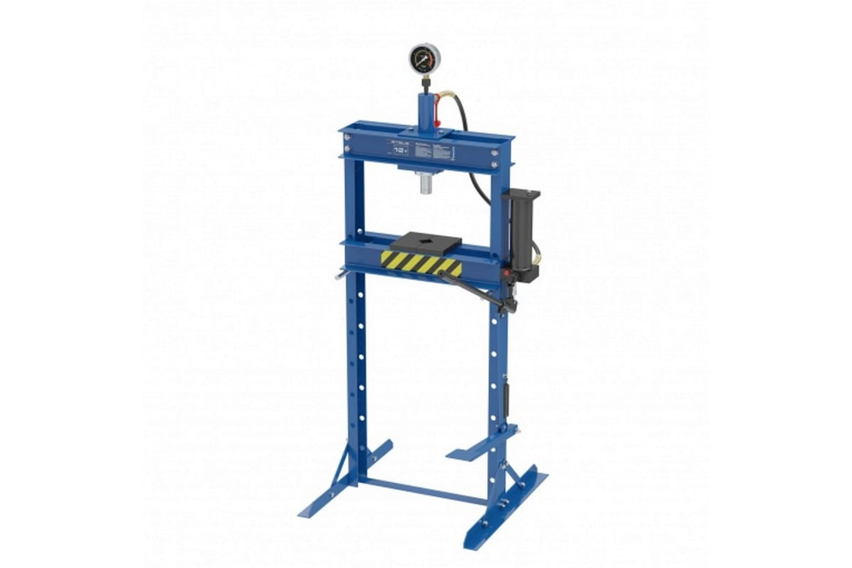 Гидравлический пресс с манометром и педалью поставляется комплектом из 2 частей и способен воздействовать на предметы с усилием до 12 т. Его используют для монтажа и демонтажа различных деталей — подшипников, сайлентблоков, втулок, штифтов, рычагов. Шток имеет исключительно плавный ход благодаря высокому уровню исполнения гидравлического насоса и самого штока. Для нагнетания давления можно использовать как ручной, так и ножной привод, что облегчает работу. Пресс пригодится для ремонта автомобилей — самостоятельного или в автосервисе.