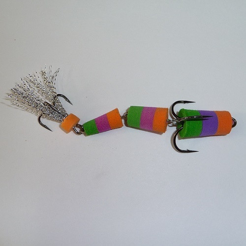 Трехсоставная Mодель №15 является удлиненным вариантом популярной Модели №1. Более подвижный хвостик добавляет дополнительные колебания в игру приманки и повышает её подвижность и уловистость. Для ловли судака, щуки и сома методом джига, ловит окуня, жереха и др. Попадаются даже сазан и лещ. Обладает отличной баллистикой, что важно при ловле с берега. При хорошем клёве, рыба садится на большой тройник, при слабом - кусает за хвост и прихватывает тот тройник, что поменьше. Применяется с грузом <чебурашка> весом 10-60 г.