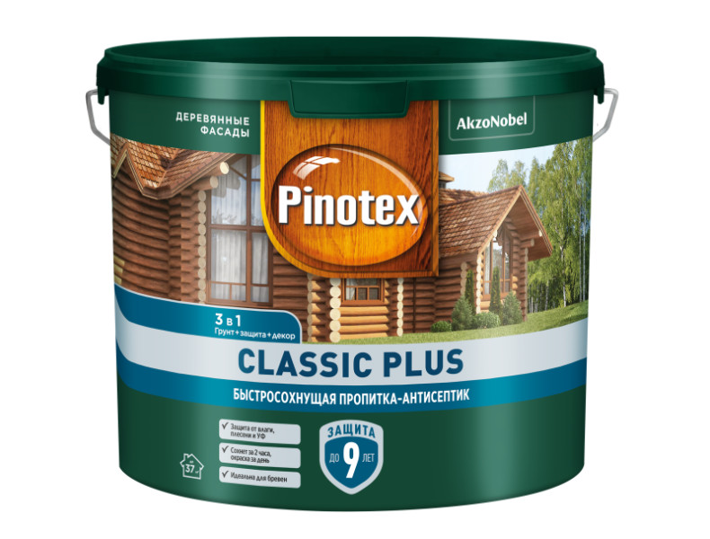 Для наружных работ. Pinotex Classic Plus идеально подходит для полукруглых облицовочных профилей, деревянных строений из бруса, оцилиндрованного бревна, вагонки, блок-хауса, планкена, а также окон, дверей и других вертикальных поверхностей из строганой и пиленой древесины. Рекомендуется для отделки лиственных и хвойных пород древесины.