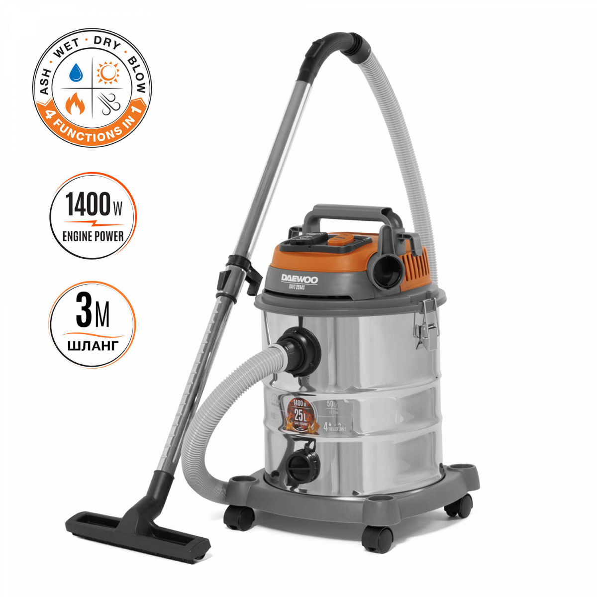 Универсальный пылесос Daewoo DAVC 2514S предназначен для очистки помещений во время строительных работ.