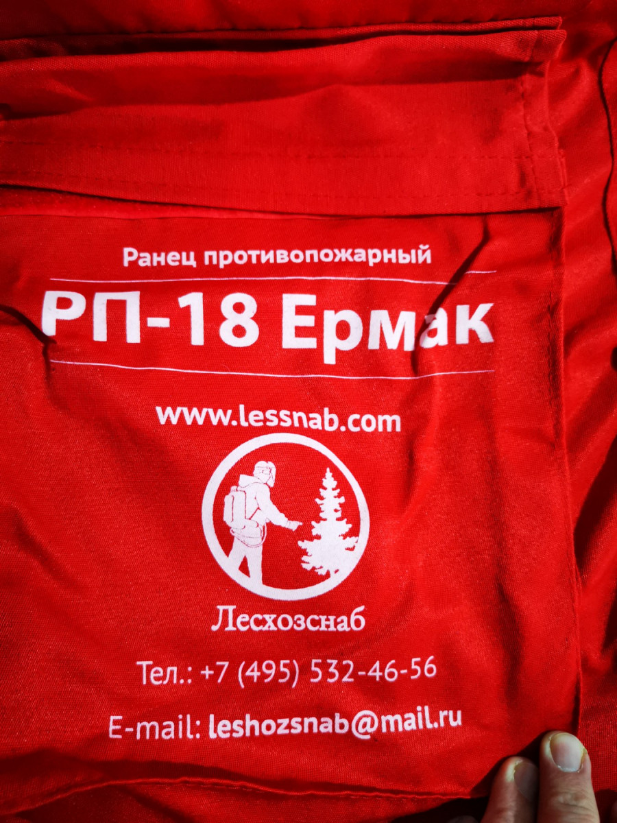 Ранец противопожарный РП-18 Ермак ранцевый лесной огнетушитель (РЛО) предназначен для локализации и тушения очагов лесных низовых пожаров. Резервуар огнетушителя изготовлен из водопроницаемой прорезиненной мягкой емкости, которая помещена в чехол из смесовой ткани. К ёмкости подсоединён резиновый шланг, к которому в свою очередь подсоединён гидропульт. Гидропульт имеет защитное анодированное покрытие снаружи и внутри. Прилегающая к спине пользователя стенка ранца укомпаклетована пенополиуретановой прокладкой, предохраняющая спину бойца-пожарного от переохлаждения. Широкие мягкие заплечные ремни дополнены поясной и грудной стяжкой с замками, для распределения нагрузки на спину равномерно и предотвращающим соскальзывание емкости набок. В горловине огнетушителя размещен мерный стакан с сеткой, который используется при смешивании специальных раствор Расчетная производительность 2,25 л/мин Длина компактной струи 8,5 м Длина распыленной струи 3,5 м Емкость 18 л Масса сухого ранца 2,5 кг Масса снаряженного ранца 20