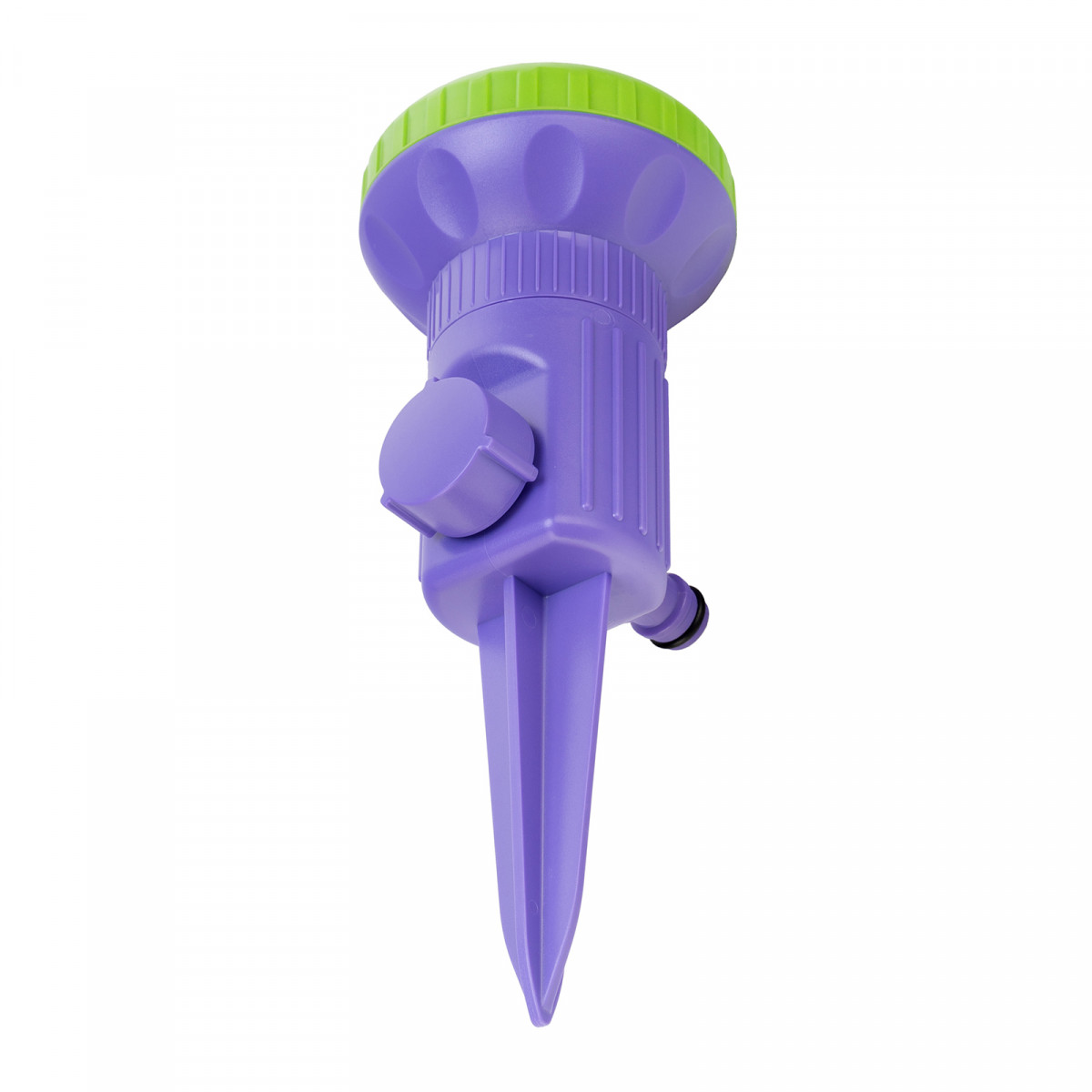 Распылитель-дождеватель Palisad 65405 9-режимный на пике используется для равномерного орошения газонов, клумб, кустарников и т.д. Максимальная площадь полива составляет 9 кв. м, дальность регулируется до 1,7 м в зависимости от выбранного режима. На распылителе есть соединитель для подключения к другим модулям и создания поливочной линии.