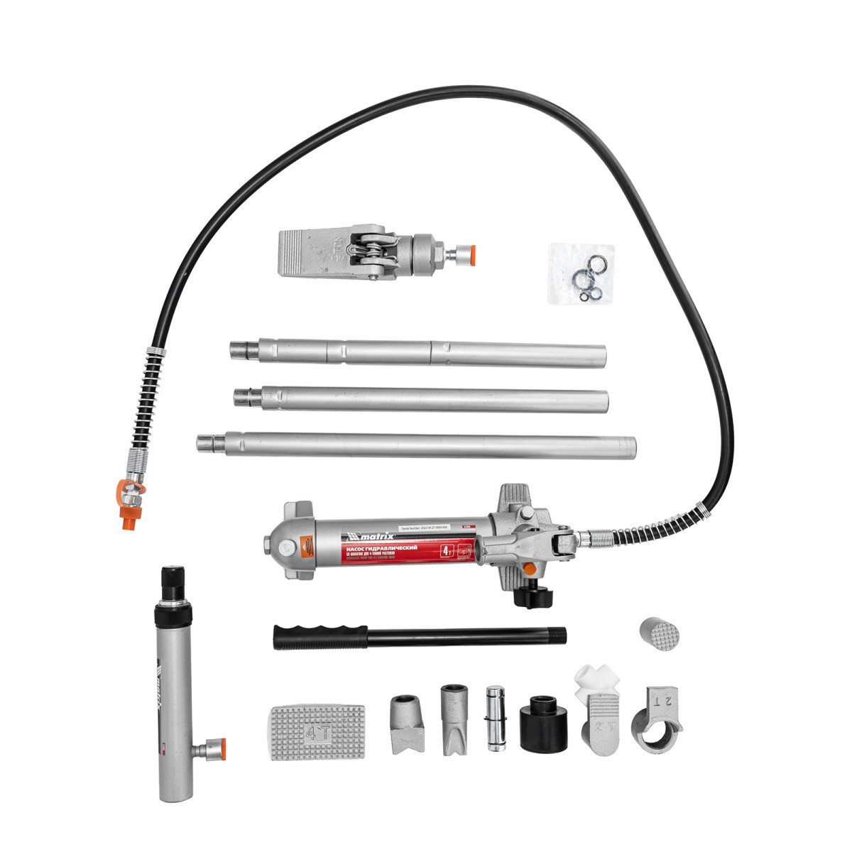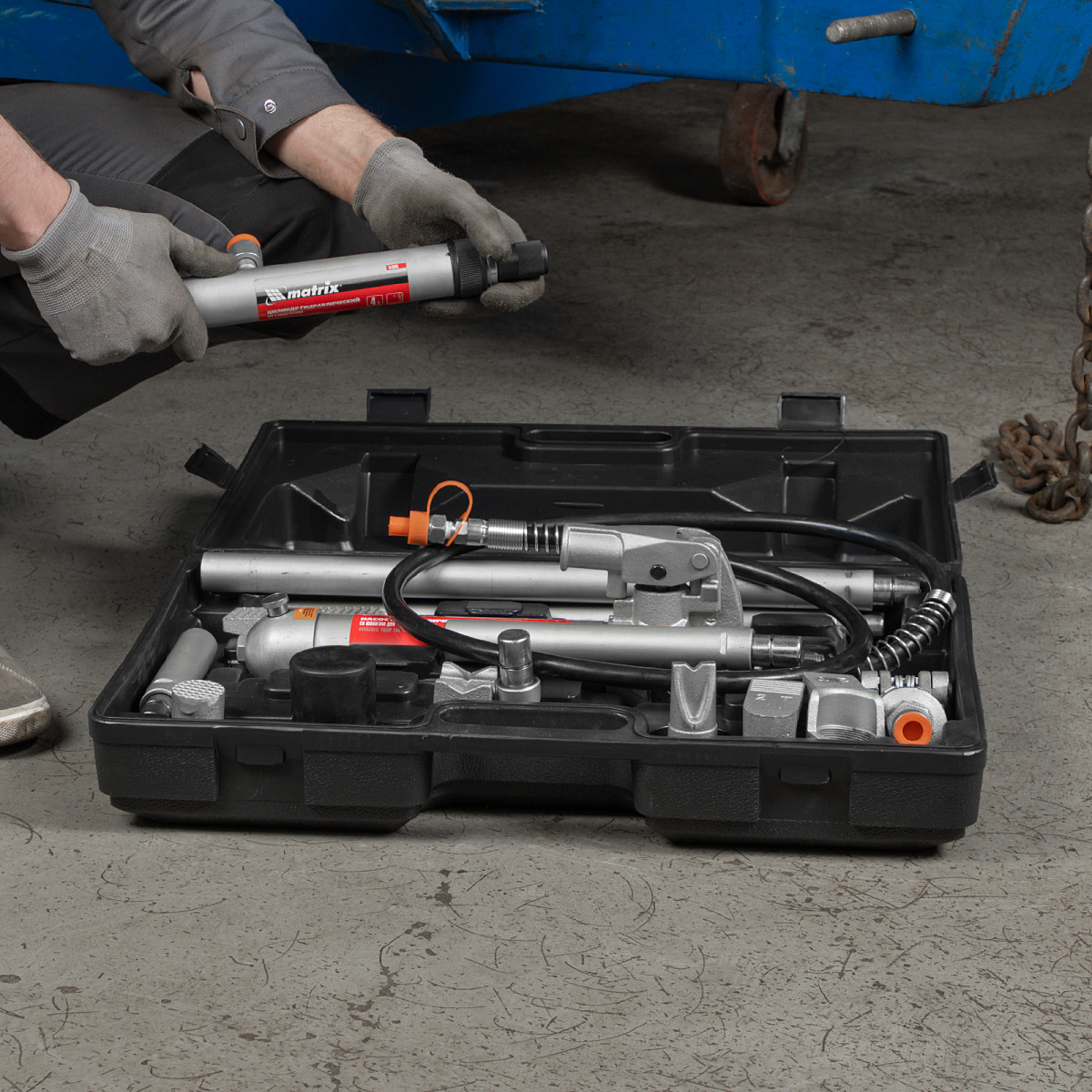 Растяжка гидравлическая, 4 т, набор из 17 предметов, 7 сменных насадок, в пластиковом кейсе Matrix