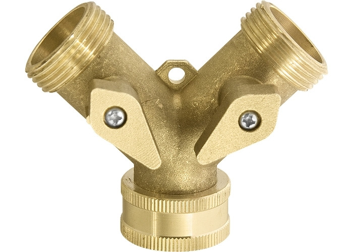 Разветвитель PALISAD 66523 пригодится на садово-огородном участке и предназначен для разделения потока воды на две составляющие. Подключается к трубе или крану с наружной резьбой G3/4". На концах имеет наружную резьбу 3/4 дюйма. Поток воды регулируется ручными переключателями. Распределитель выполнен из высокопрочного латуни и имеет длительный срок эксплуатации.