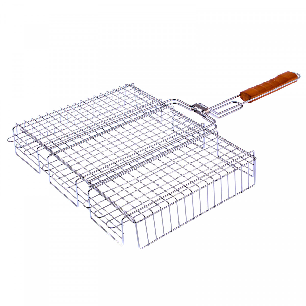 • За счет увеличенных опорных стержней решетка надежно фиксируется на мангале, а для жарки используется вся рабочая площадь.