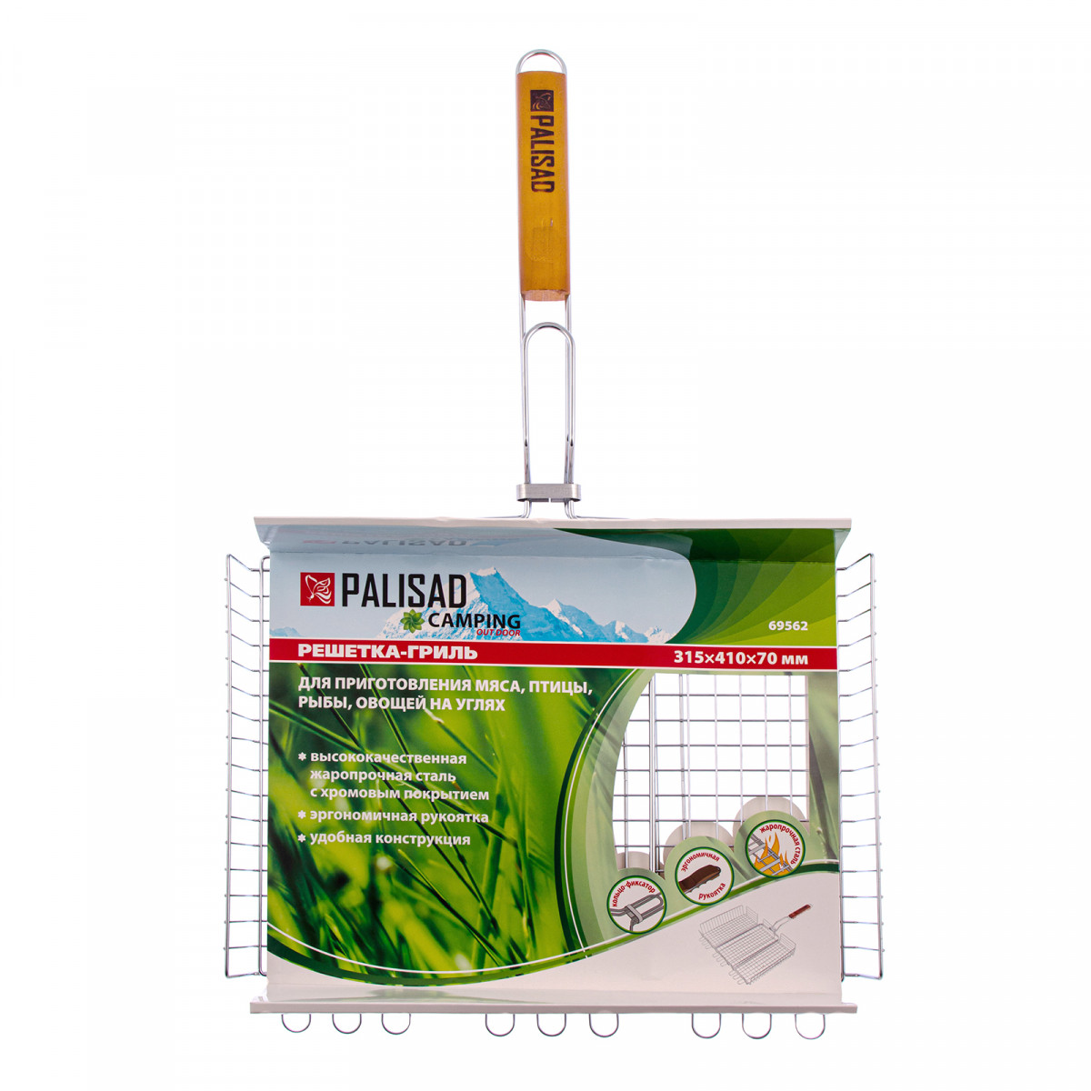 Объемная хромированная решетка гриль Palisad Camping 69562 размером 315 х 410 х 70 мм позволяет легко жарить пищу с двух сторон в мангале. Объемная конструкция решетки с возможностью регулировки высоты позволяет приготовить крупные куски мяса и куриную тушку без потери сочности.