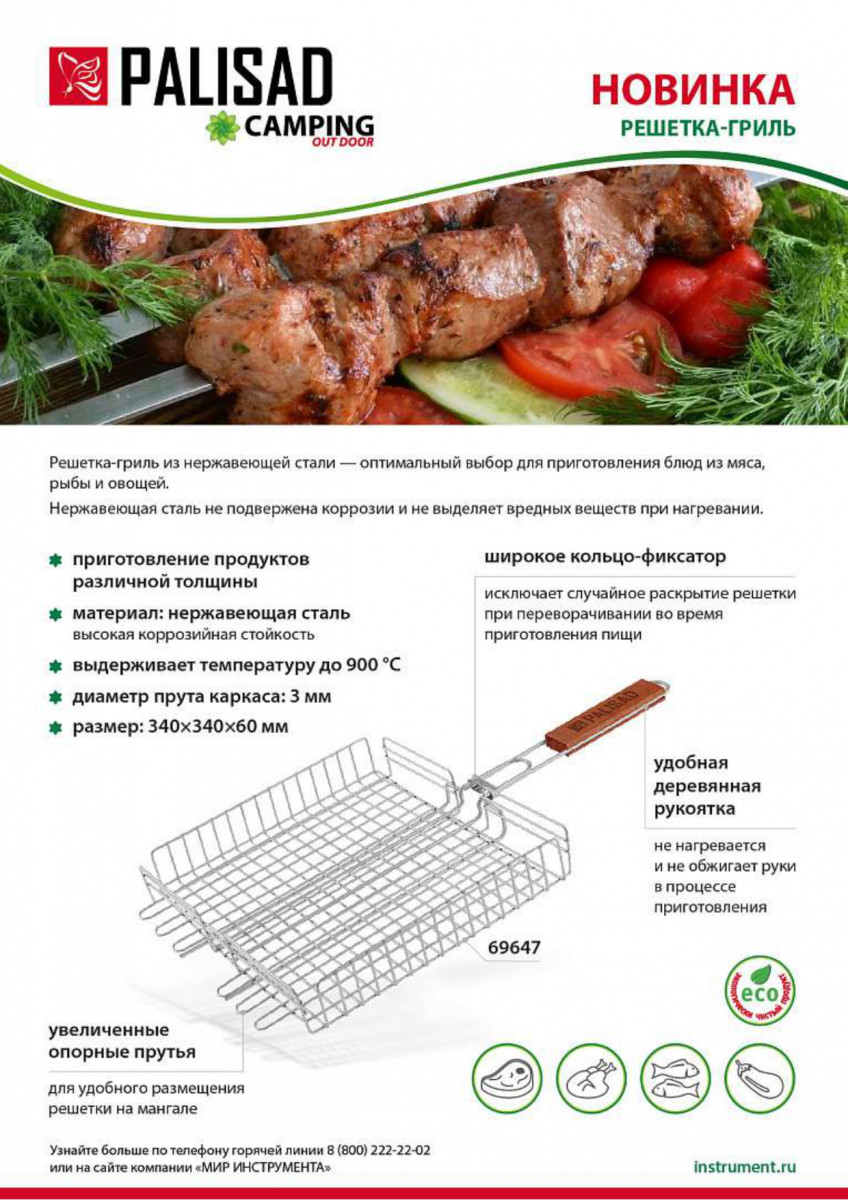 Объемная решетка-гриль Palisad Camping 69647 размером 340 х 340 х 60 мм, из нержавеющей стали, предназначена для приготовления шашлыка на углях. С ее помощью можно быстро приготовить вкусные овощные, мясные, рыбные деликатесы. Решетка-гриль будет полезна для организации комфортного отдыха на дачном участке.