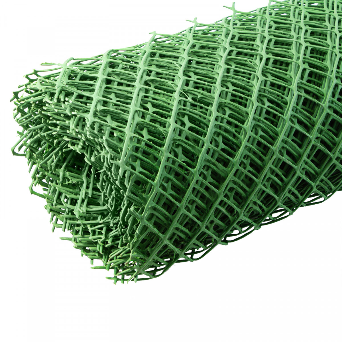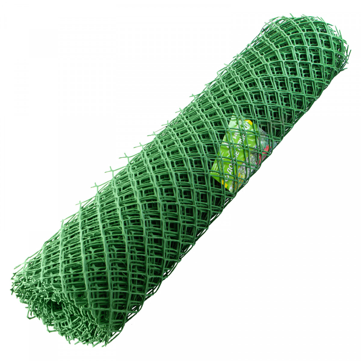 Зеленая пластиковая заборная решетка 64535, 1,5 х 25 м, в рулоне, с ромбовидными ячейками 75 х 75 мм, используется для создания изгороди. С ее помощью можно полностью оградить садовую и жилую территорию или зонировать отдельные участки. Возможно применение изделия в качестве каркаса для живой изгороди или элемента декора вместе с деревянными и каменными материалами. Также решетка пригодится для установки ограды на детских и спортивных площадках, создания вольеров для птиц и животных.