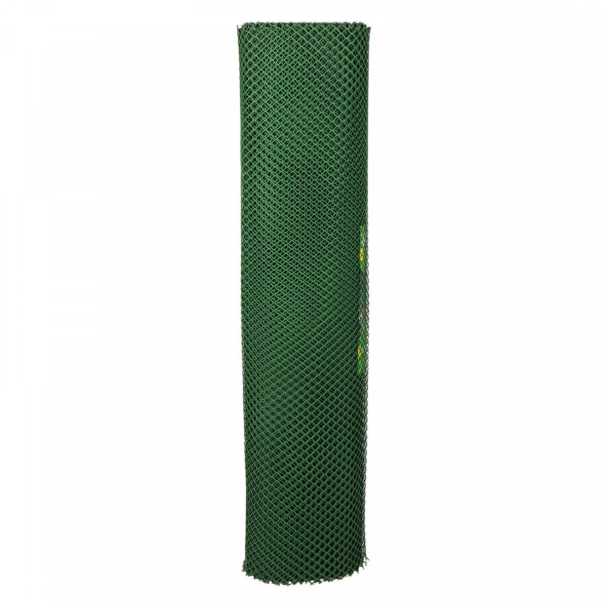 Зеленая пластиковая заборная решетка 64525, 1,6 х 25 м, в рулоне, с ромбовидными ячейками 22 х 22 мм, используется для создания изгороди. С ее помощью можно полностью оградить садовую и жилую территорию или зонировать отдельные участки. Возможно применение изделия в качестве каркаса для живой изгороди или элемента декора вместе с деревянными и каменными материалами. Также решетка пригодится для установки ограды на детских и спортивных площадках, создания вольеров для птиц и животных.