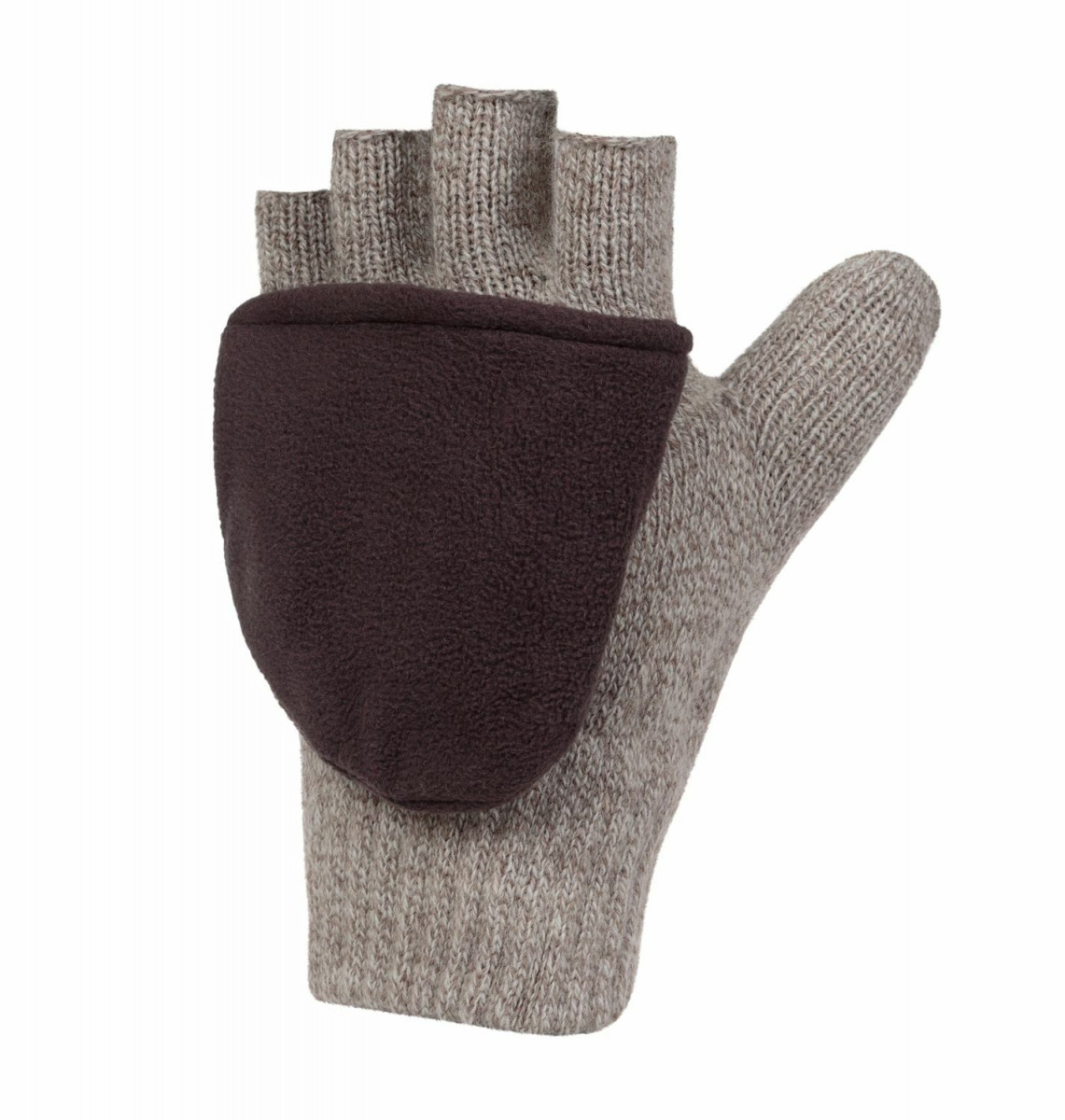 Качественные и теплые рукавицы-трансформеры. Сочетание полушерстяного вязанного верха, флисовой подкладки, утеплителя «Шелтер микро»® плотностью 60 г/м2, плотного двойного напульсника и флисового клапана для пальцев обеспечивает максимальную теплоизоляцию среди «митенок», представленных на российском рынке.