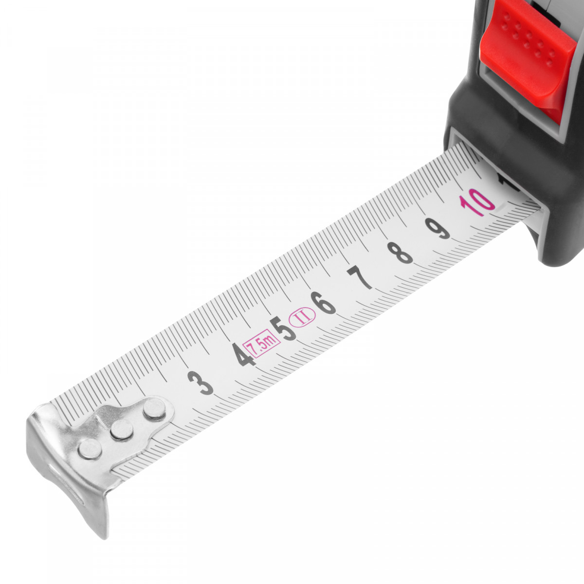 Рулетка Matrix Continuous fixation 31090 с полотном длиной 7,5 м и шириной 25 мм, в двухкомпонентном корпусе, с плавной фиксацией, — измерительный инструмент с ценой деления 1 мм и классом точности 2. Эргономичный корпус удобно ложится в руку, обеспечивая комфорт во время работы. Зацеп надежно закреплен на конце измерительной ленты при помощи заклепок. Рулетка пригодится в быту, а также будет полезна во время строительства или ремонта.