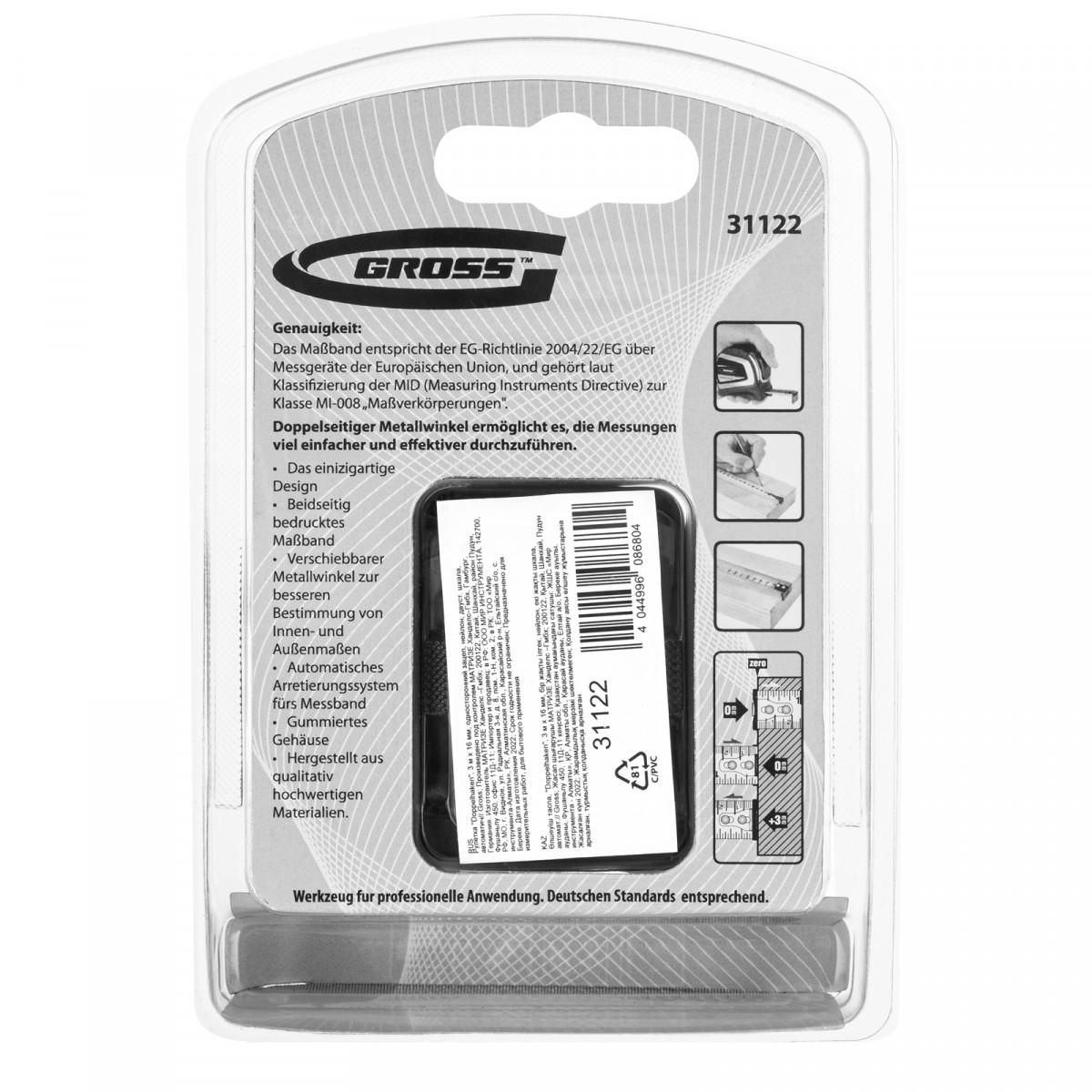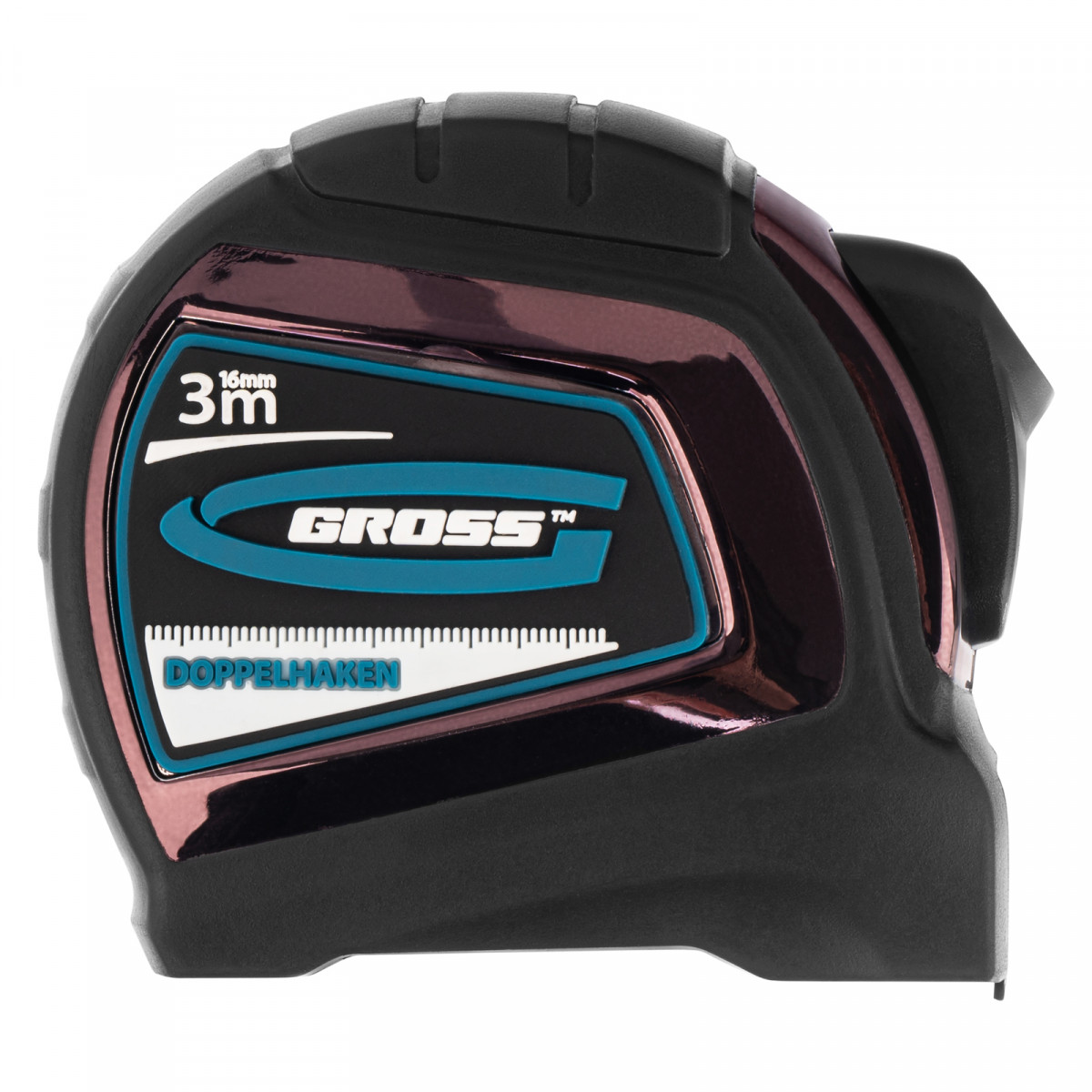 Рулетка "Doppelhaken",3 м x 16 мм,односторонний зацеп,Нейлон,двусторонняя шкала,автоматическая фиксация Gross