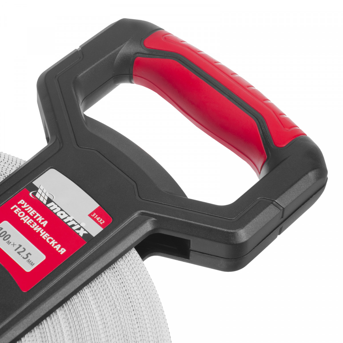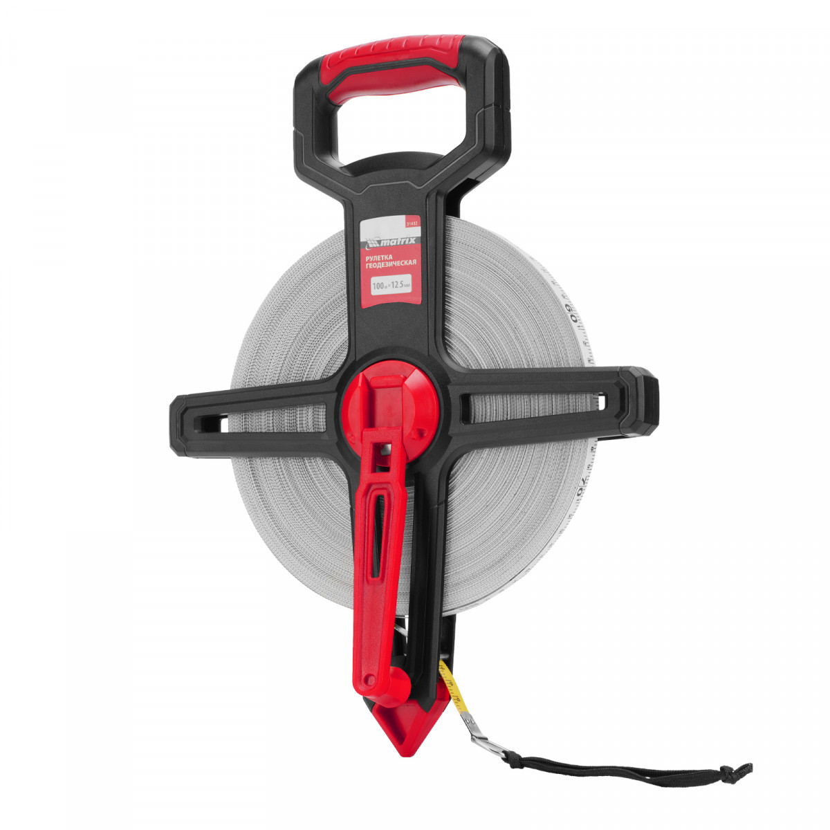 Рулетка геодезическая 100 м х 12,5 мм, открытый корпус, фиберглассовая лента Matrix