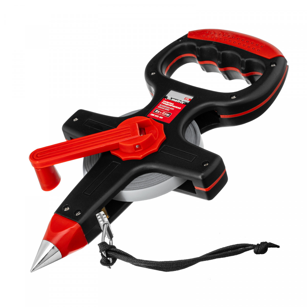 • Удобная эксплуатация — сматывающий механизм с ручкой облегчает возврат измерительного полотна в корпус.