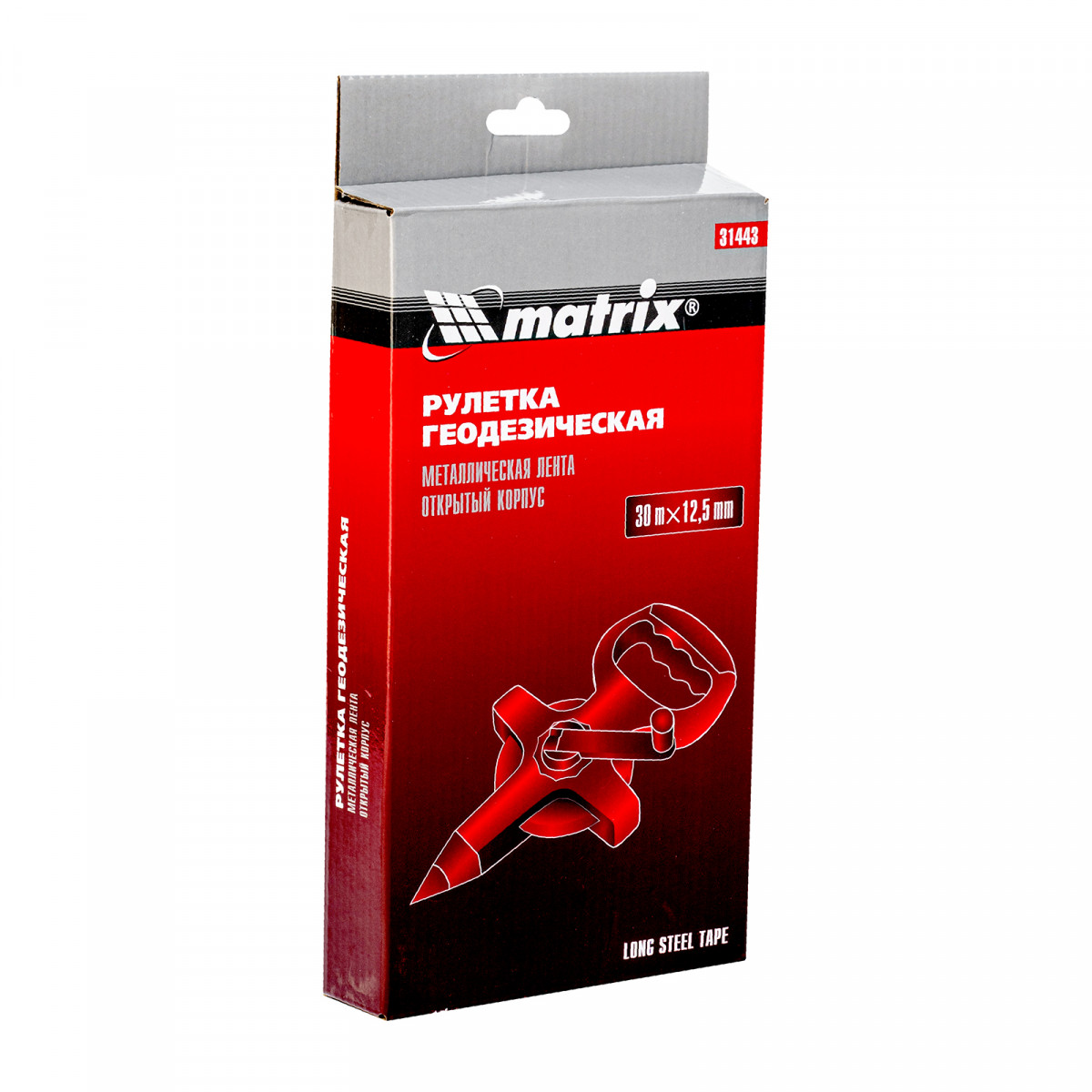 Рулетка геодезическая, 30 м х 12,5 мм, металлическая лента, открытый корпус Matrix